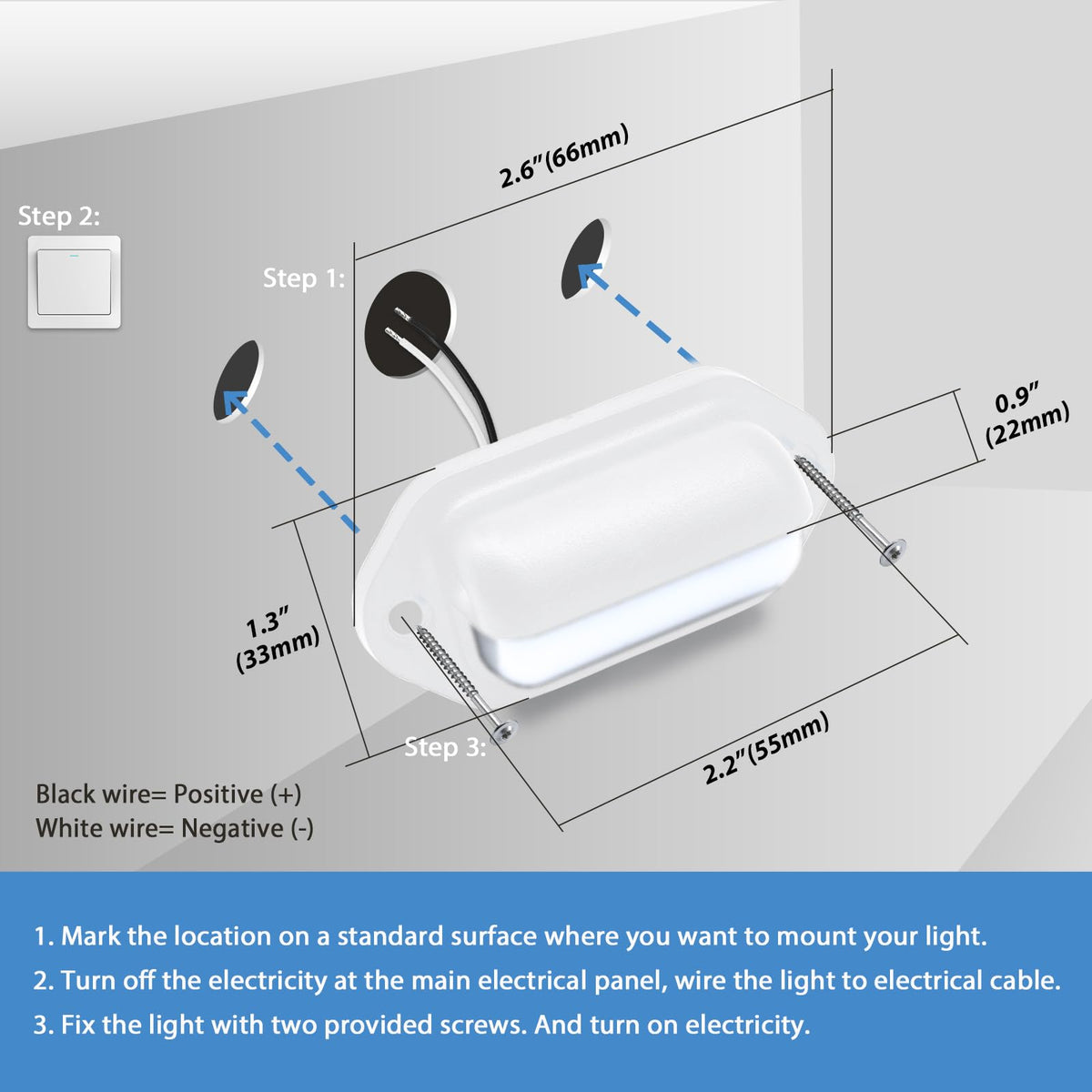 - ? Easy installation with two mounting screws (not included); features twin-wire exit from the center at the back for straightforward connections (black wire for positive, white wire for negative/ground).
