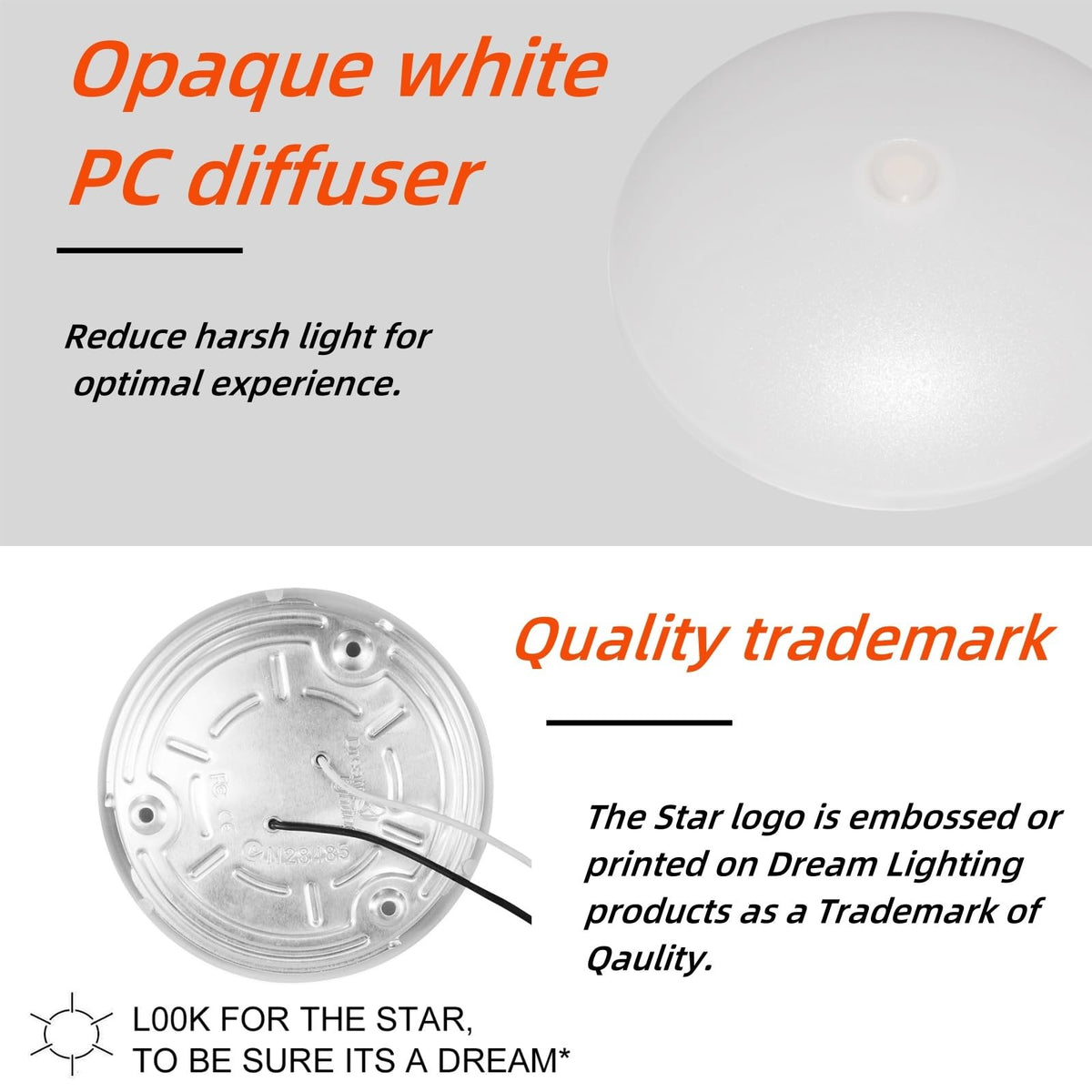Dream Lighting 12V Rv Puck Lights, 4.5" Warm White Led Ceiling Light, Pack Of 2
