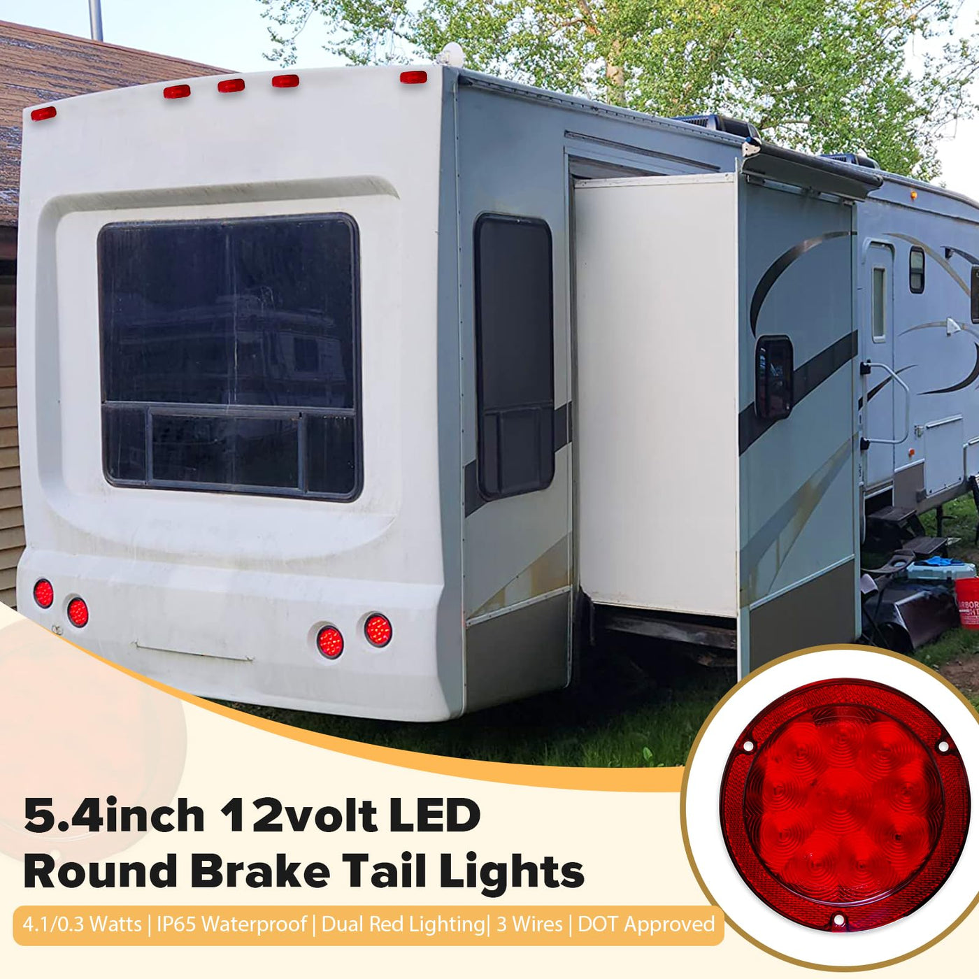 Dream Lighting 5.4" Led Trailer Tail Lights, Waterproof Round Brake/Turn Lights - Pack Of 2