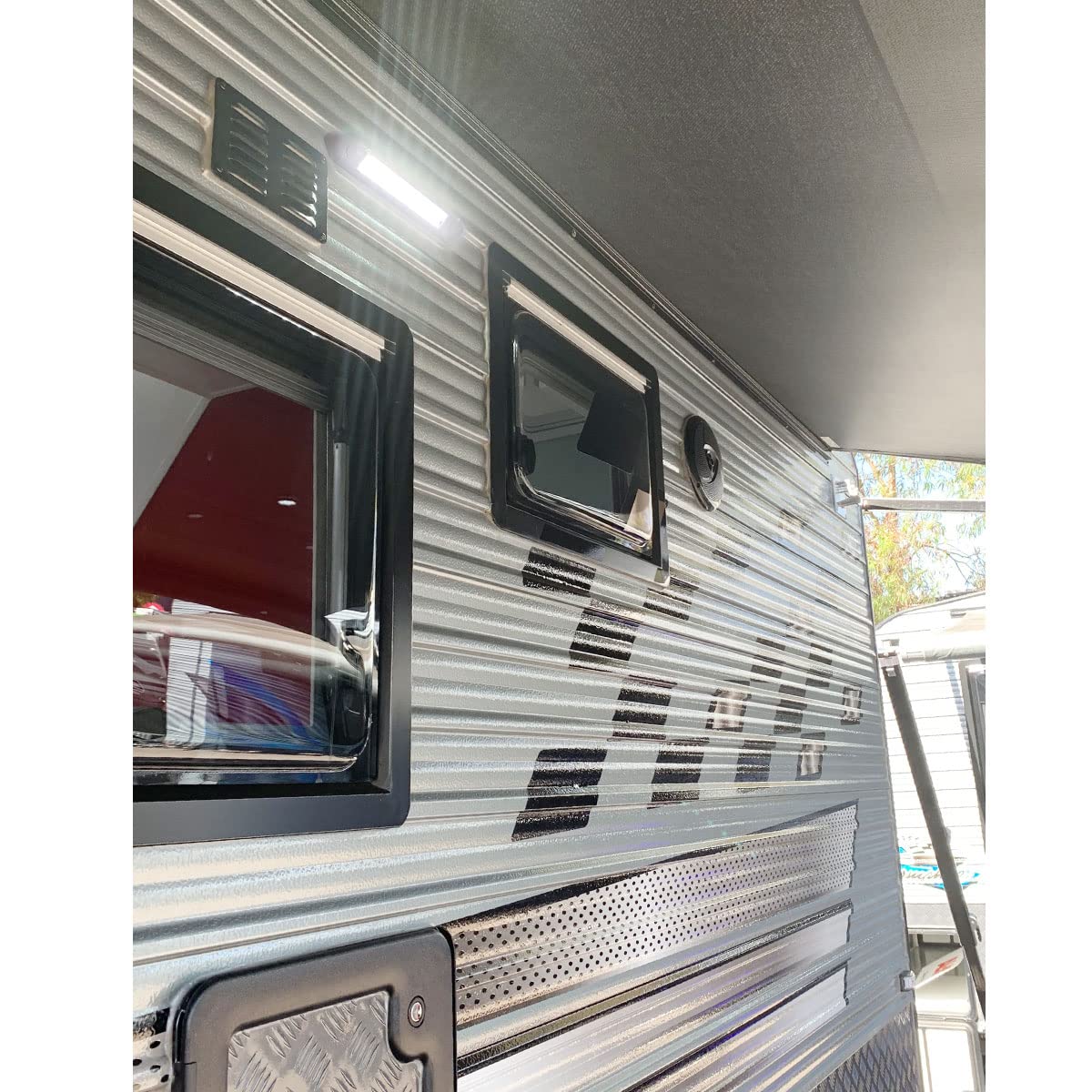 With its slim profile measuring 10” x 1.6” x 1.2”, this LED light is specifically engineered to thrive in low-voltage settings. It can easily fit into tight spaces such as awnings, cargo bays, or food truck exteriors. The non-replaceable 350-lumen LEDs emit a bright 7000K daylight glow, ensuring excellent visibility for 30,000+ hours. Designed to minimize power drain, this energy-efficient light is ideal for various outdoor applications, including RV exterior lighting and trailer accessories.