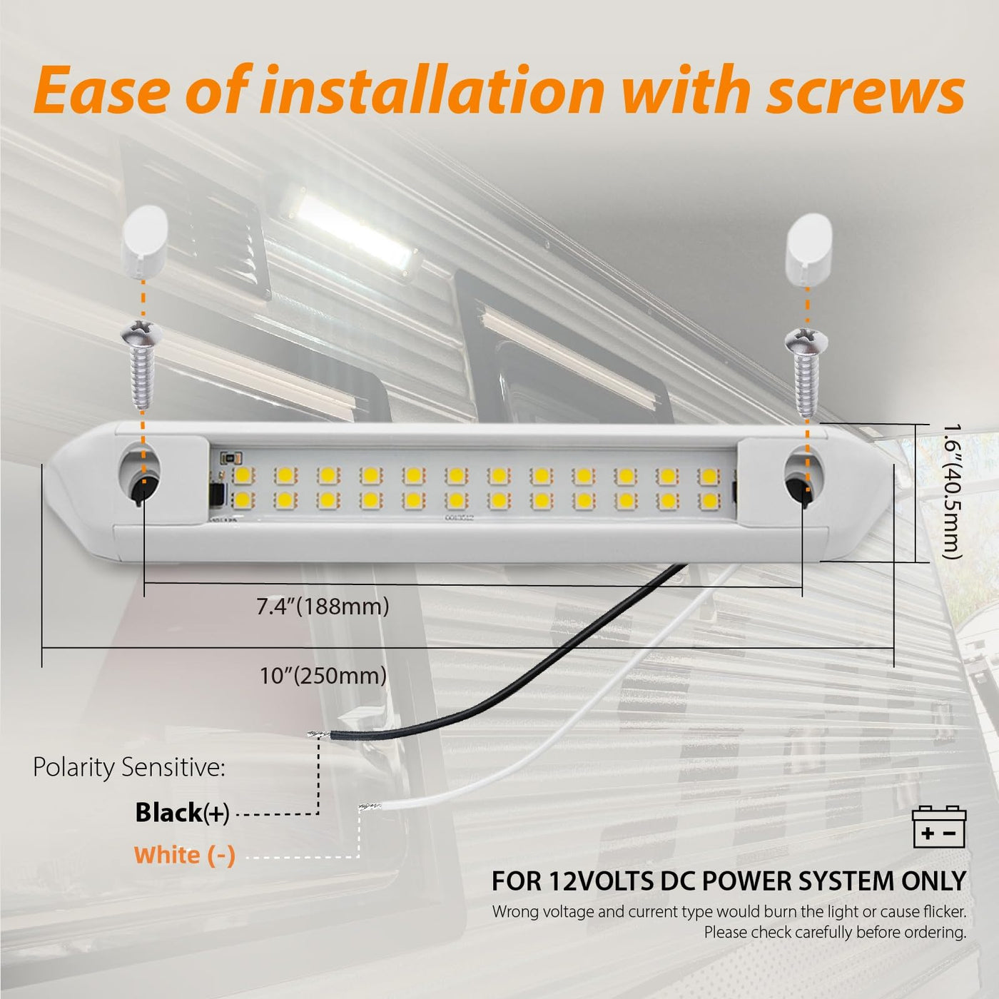 Q: Are these lights suitable for installation under RV awnings?A: Yes, the compact design of these lights allows for seamless installation under RV awnings or narrow eaves, making them ideal for enhancing outdoor lighting.