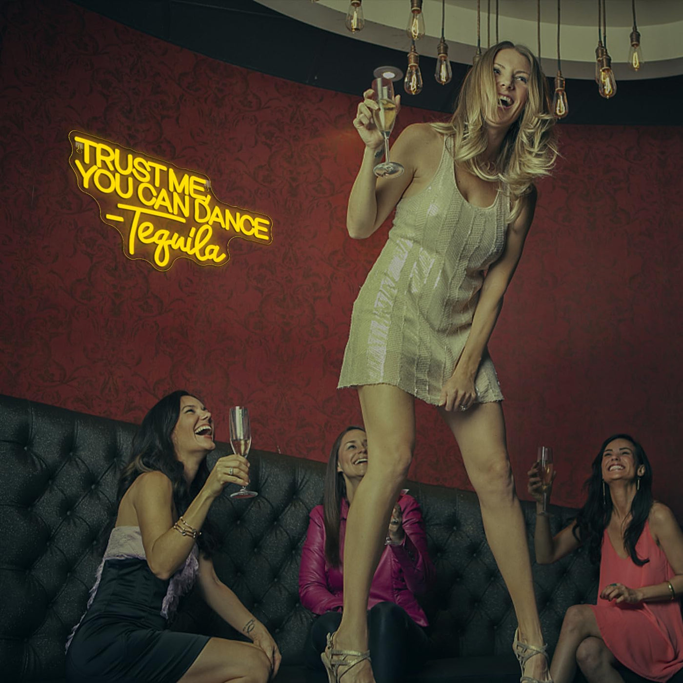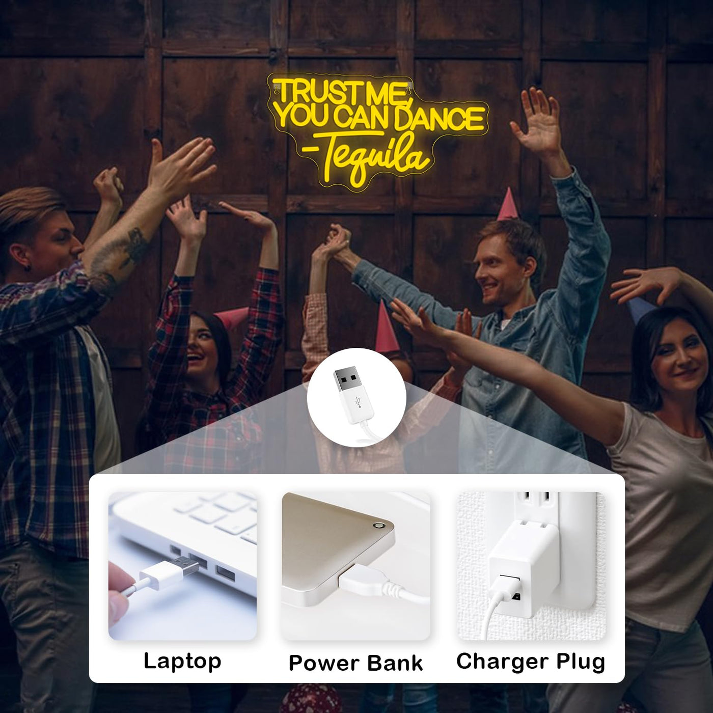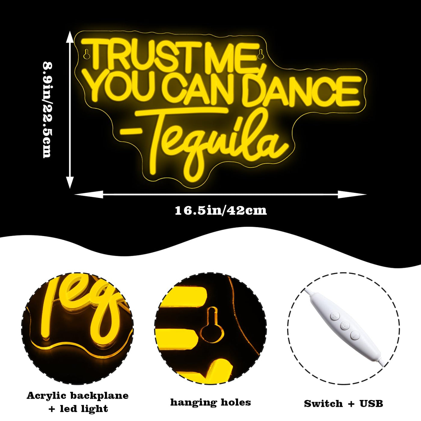 Dreamfort Trust Me You Can Dance Tequila Neon Sign Yellow Letter Neon Lights Vibrant Orange Neon Bar Signs For Wall Decor Usb Light Up Sign For Home Bar Man Cave Party Club Restaurant