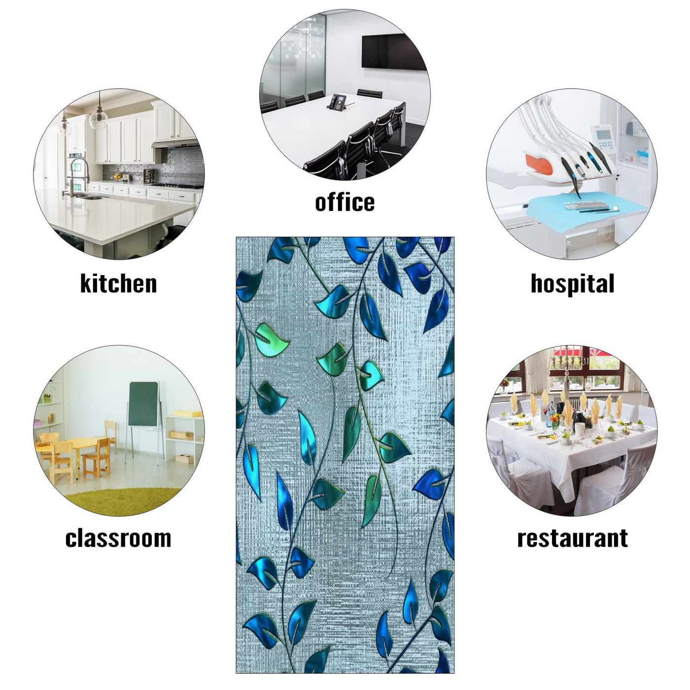 Drop Ceiling Light Covering Insert 4' X 2' Feet (Silver Stained Glass Green Retro Leaves)-Fluorescent Light Cover Reduce Glare F