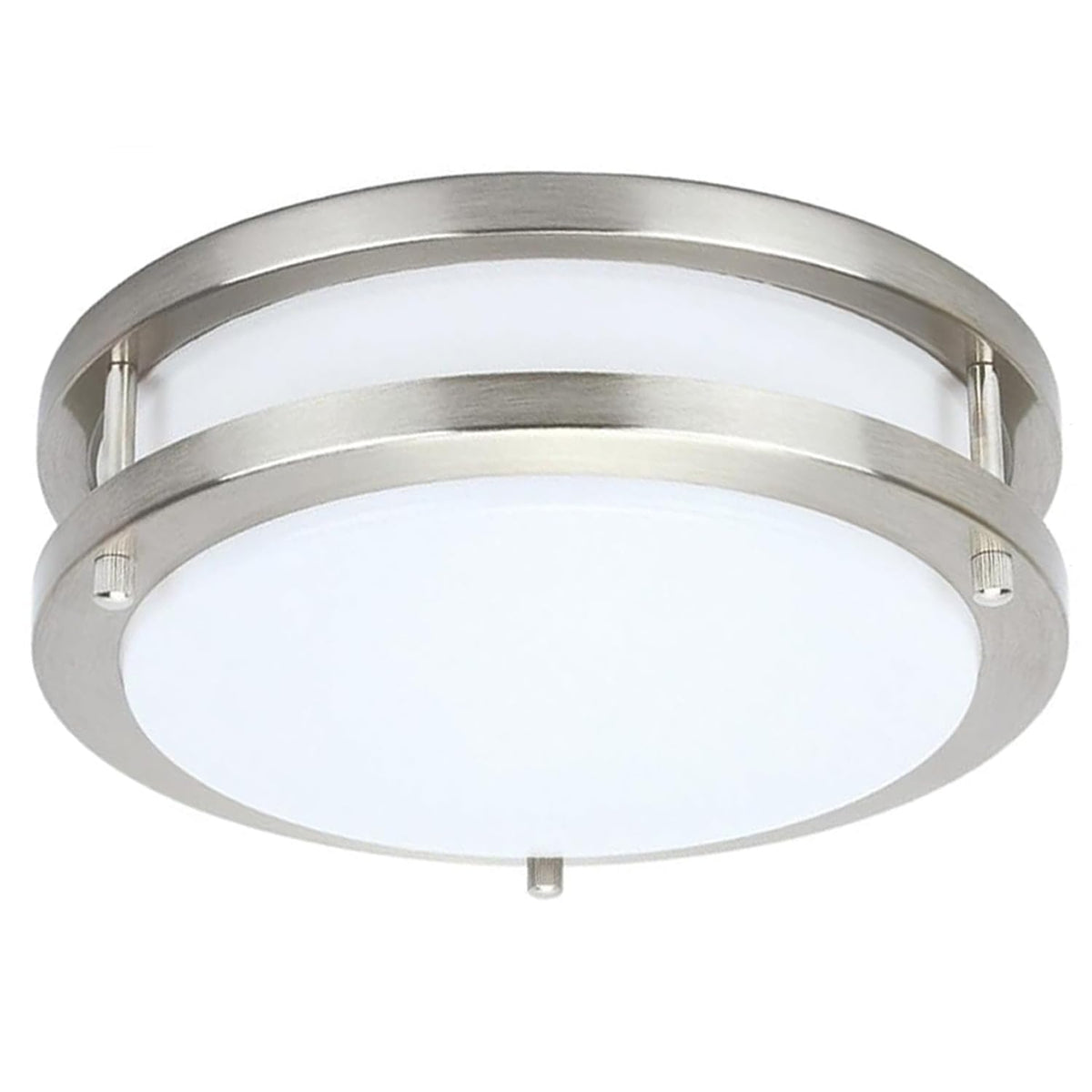 Q: What materials are used in the construction of the ceiling light?A: The ceiling light is made from brushed nickel and plastic, ensuring durability and a modern aesthetic.
