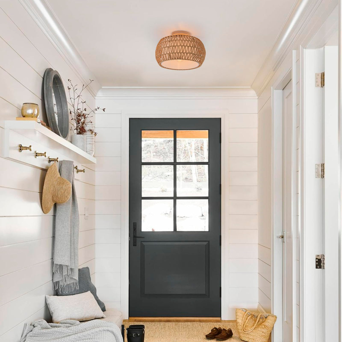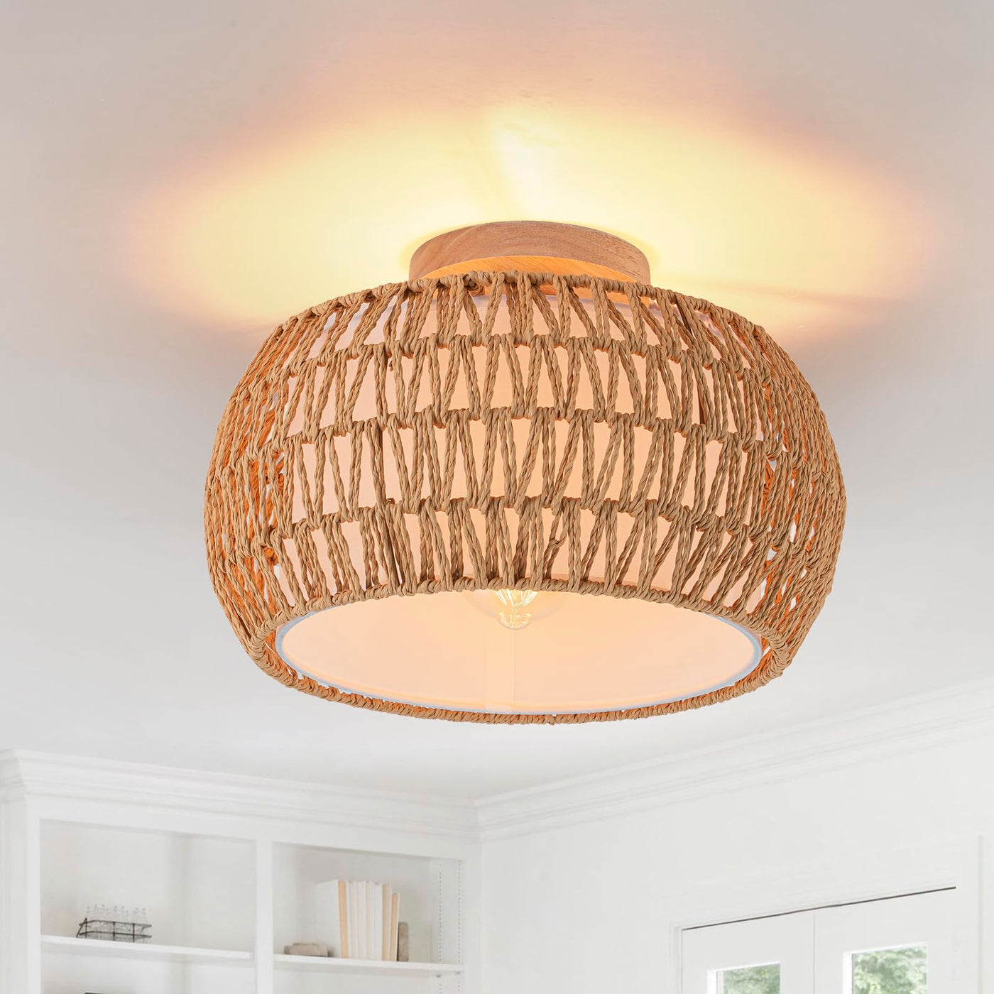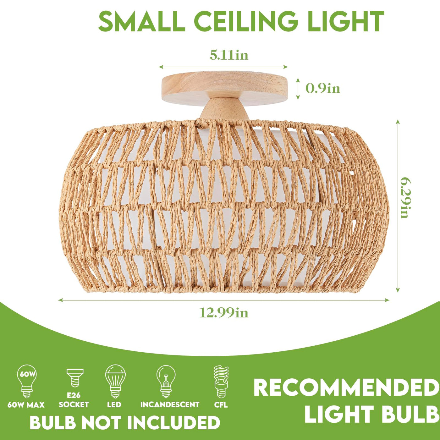 Dsliting Rattan Chandelier Boho Ceiling Light Fixtures Drum Flush Mount Ceiling Light Small Woven Chandelier For Kitchen Bedroom