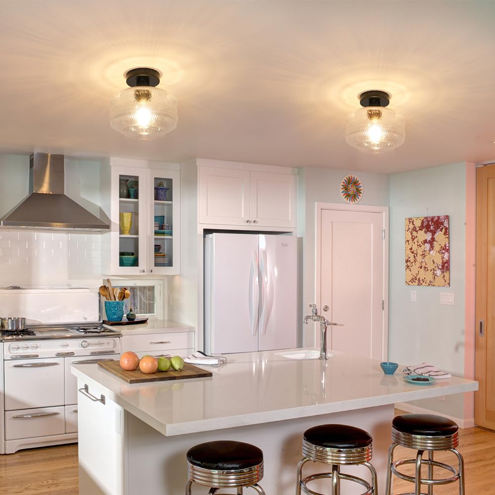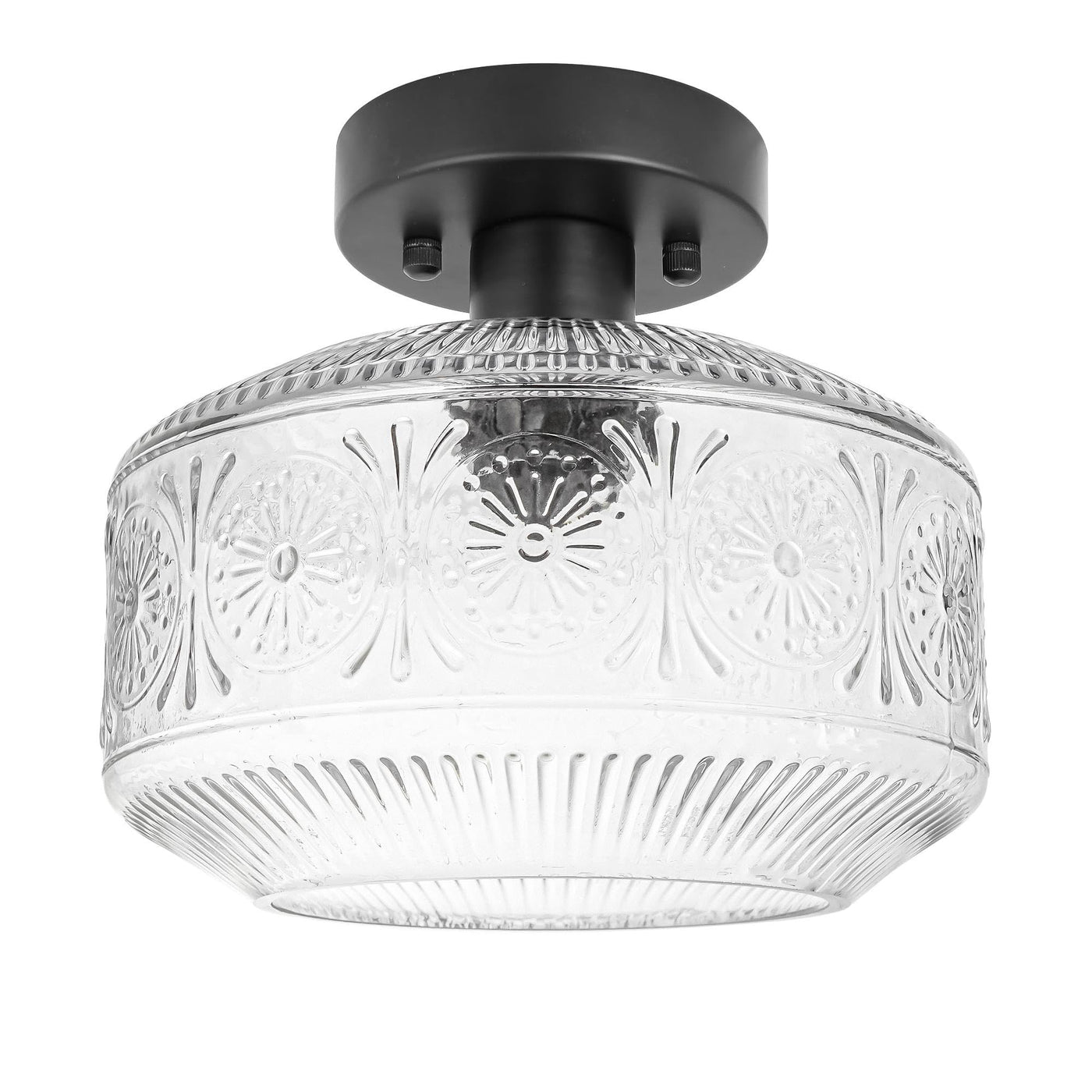 Dsmjfu Semi Flush Mount Ceiling Light, Vintage Small Ceiling Light Fixture, Thickened Glass Hallway Light Fixture, Black Kitchen Ceiling Mount Light For Entry Way, Bedroom, Bathroom, Porch