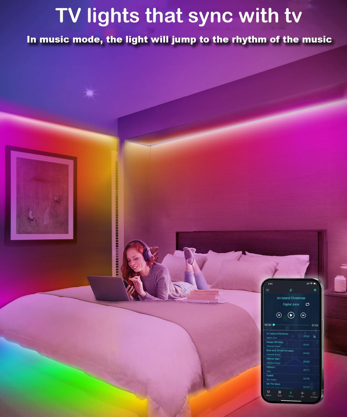 Q: Can I sync the DTQJ LED Strip Lights with music?A: Yes, the DTQJ LED Strip Lights feature a Music Sync mode that allows you to upload your favorite music to the Duoco StripX app. The lights will change color and rhythm in sync with the music, enhancing your visual experience during parties, movie nights, or relaxation.