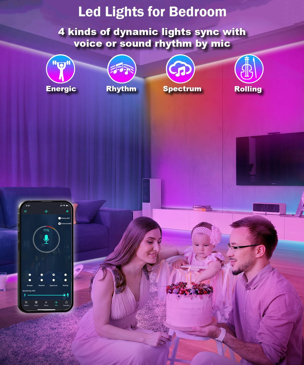 Q: What makes the DTQJ LED Strip Lights suitable for various occasions?A: The DTQJ LED Strip Lights are designed for versatility, making them perfect for a wide range of settings such as bedrooms, living rooms, home theaters, and celebrations like Halloween and Christmas. With features like dynamic mic modes and customizable lighting effects, they can adapt to any mood or event.