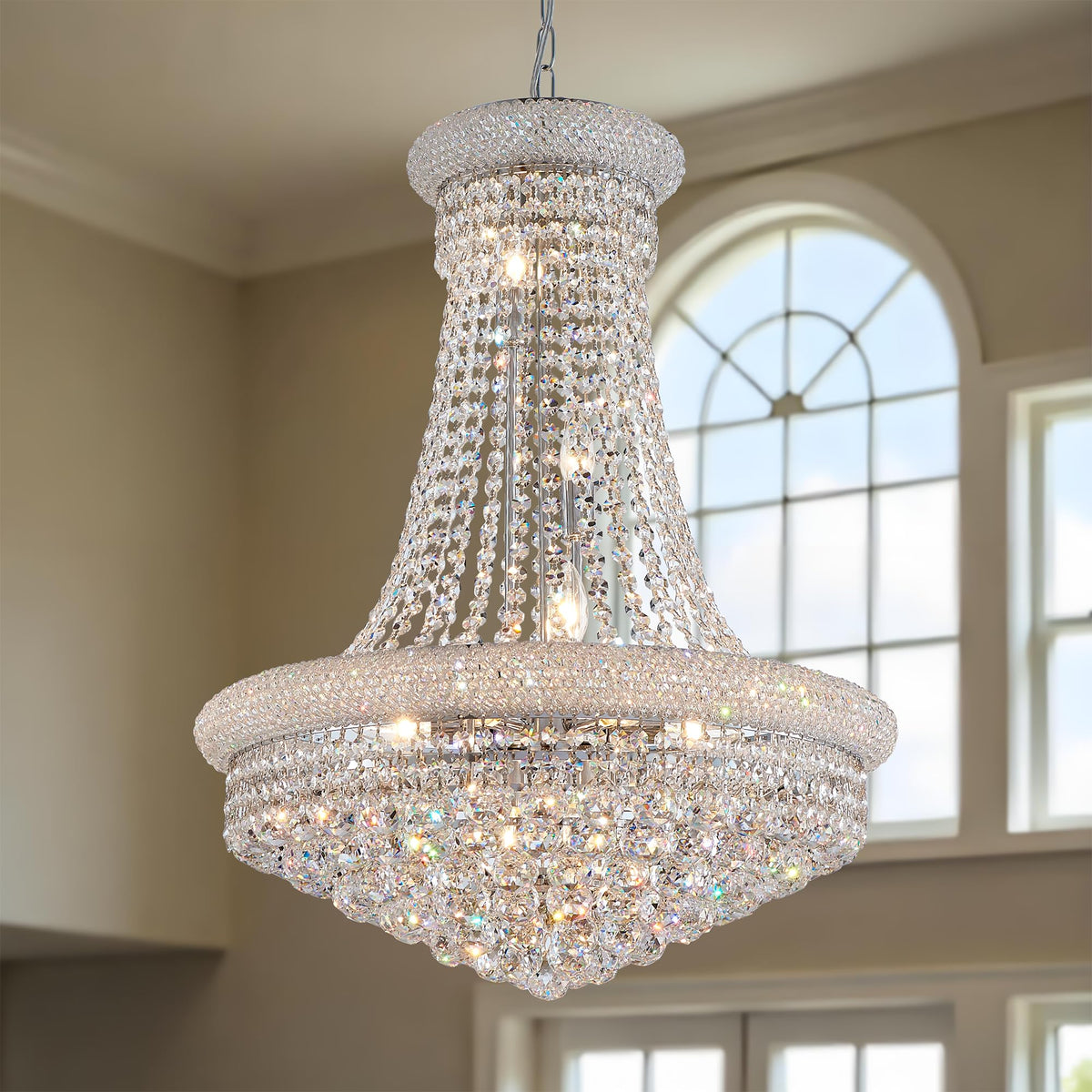 Dunfizz Modern Crystal Chandeliers Foryer Chandelier For High Ceilings, 11-Lights Silver Empire Crystal Chandeliers For Living D