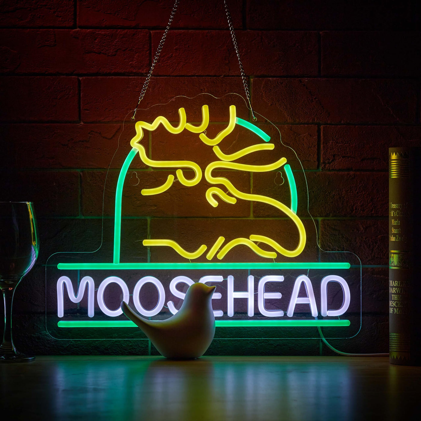 Q: How is the neon sign powered?A: The Duoweoy Moose Neon Sign is USB powered, with a cable length of 1.8m (70 inches), allowing for easy placement near power outlets.