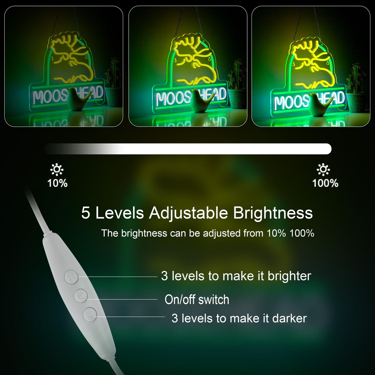 Q: Can the brightness of the neon sign be adjusted?A: Yes, the neon sign features a dimmer switch that allows you to adjust the brightness to your preference, providing flexibility for different lighting needs.