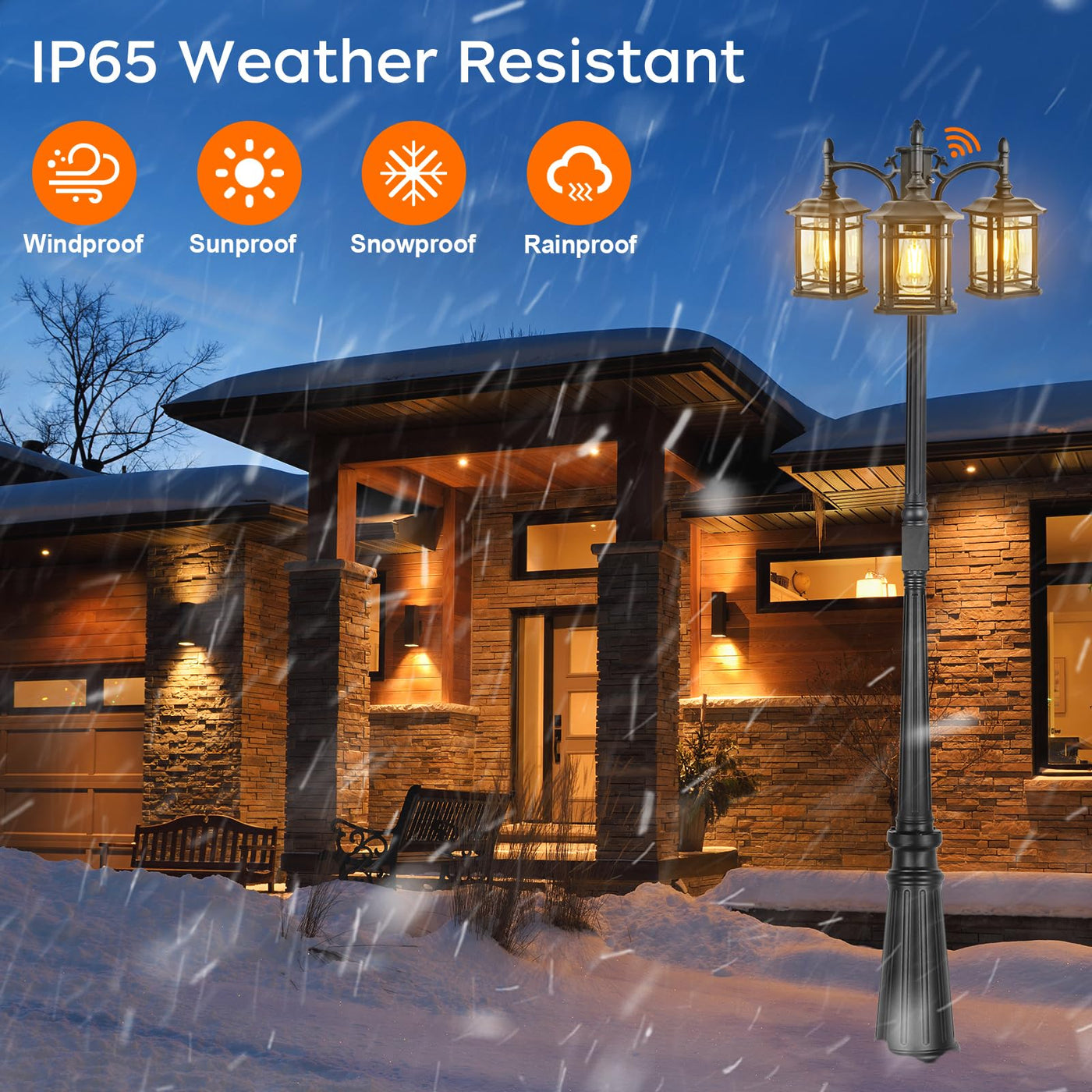 Sturdy & Weather Resistant: Crafted from anti-rust die-cast aluminum and solid clear glass, this outdoor post lamp boasts an IP65 waterproof rating. It is designed to withstand harsh weather conditions, ensuring durability and longevity for outdoor use.