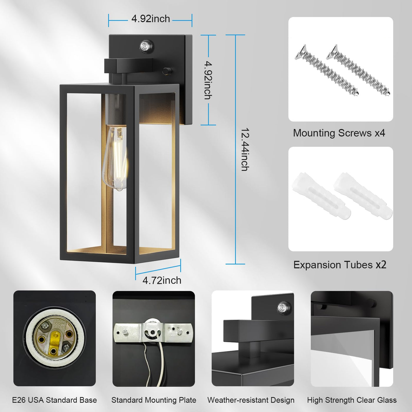 Q: How easy is it to install these outdoor wall lights?A: Installation is straightforward as the Dusk to Dawn wall lights come with all necessary mounting hardware and instructions. The open-bottom design also makes it easy to replace and clean the bulbs, allowing for quick setup in just a few minutes.