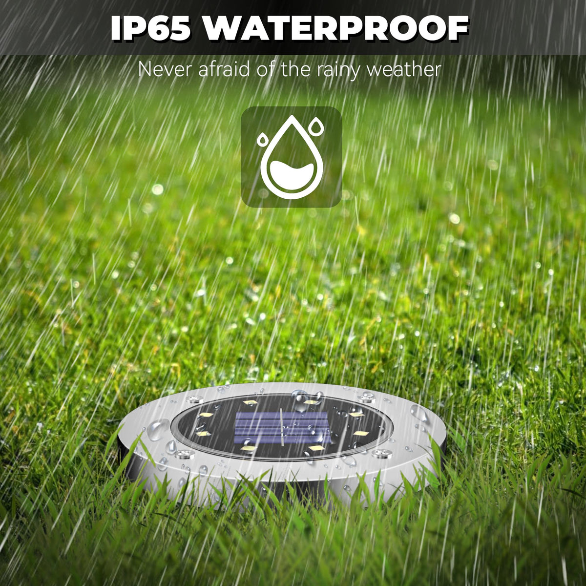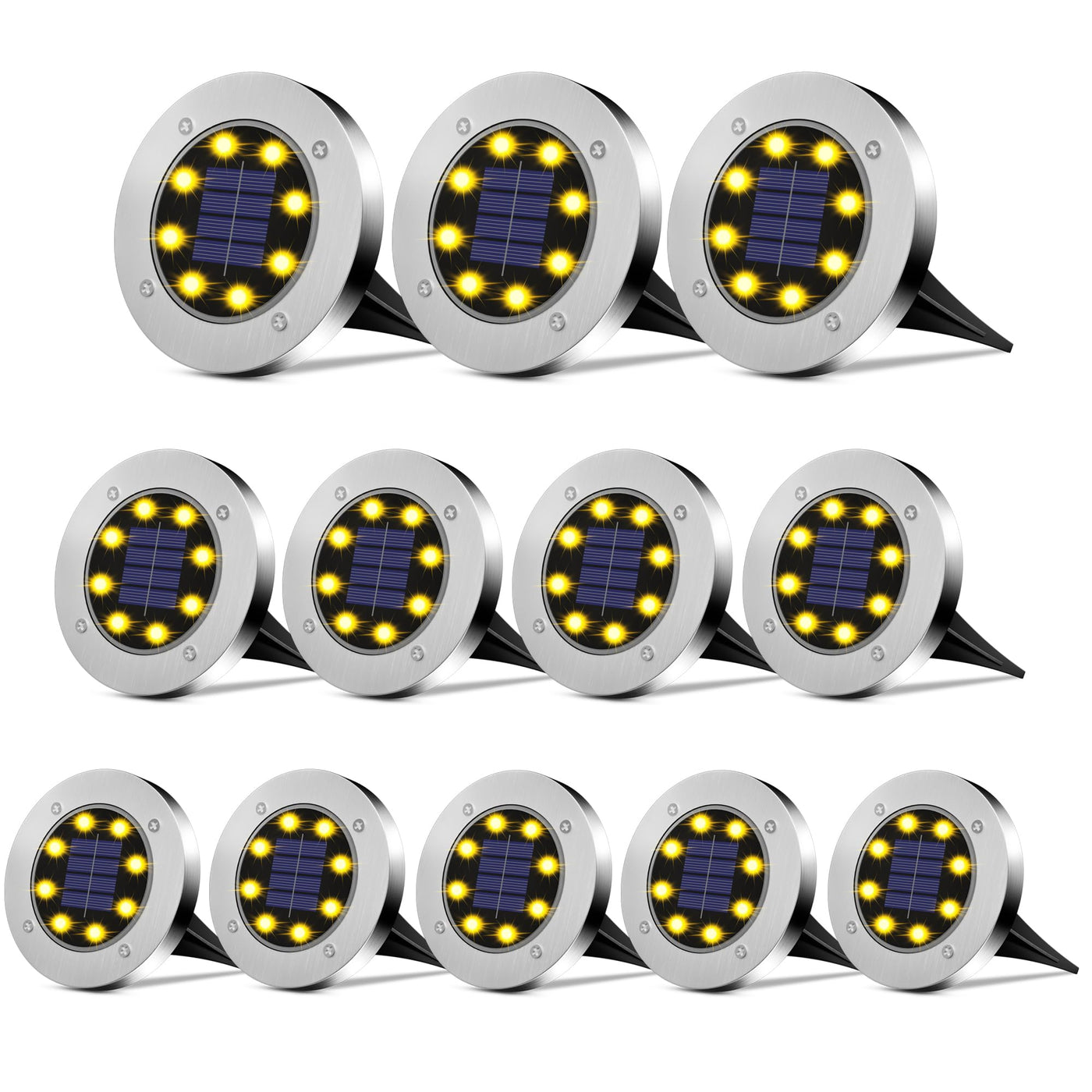 12 Pack Solar Ground Lights- Add A Touch Of Elegance To Your Outdoor Spaces With Our Waterproof Solar Outdoor Lights. With 12 Disk Lights Featuring 8 Led Bulbs Each, Our Solar Garden Lights Are Perfect For Illuminating Your Patio, Pathway, Lawn, Yard, Deck, Driveway, And Walkway.