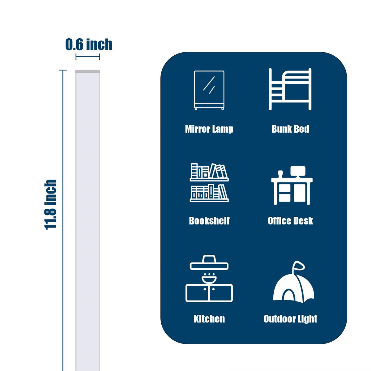 Q: What are the dimensions of the DWEPTU LED Under Cabinet Lighting?A: The DWEPTU LED Under Cabinet Lighting measures 12.0 inches in length, 1.0 inch in width, and weighs 0.24 pounds, making it a compact option for various spaces.