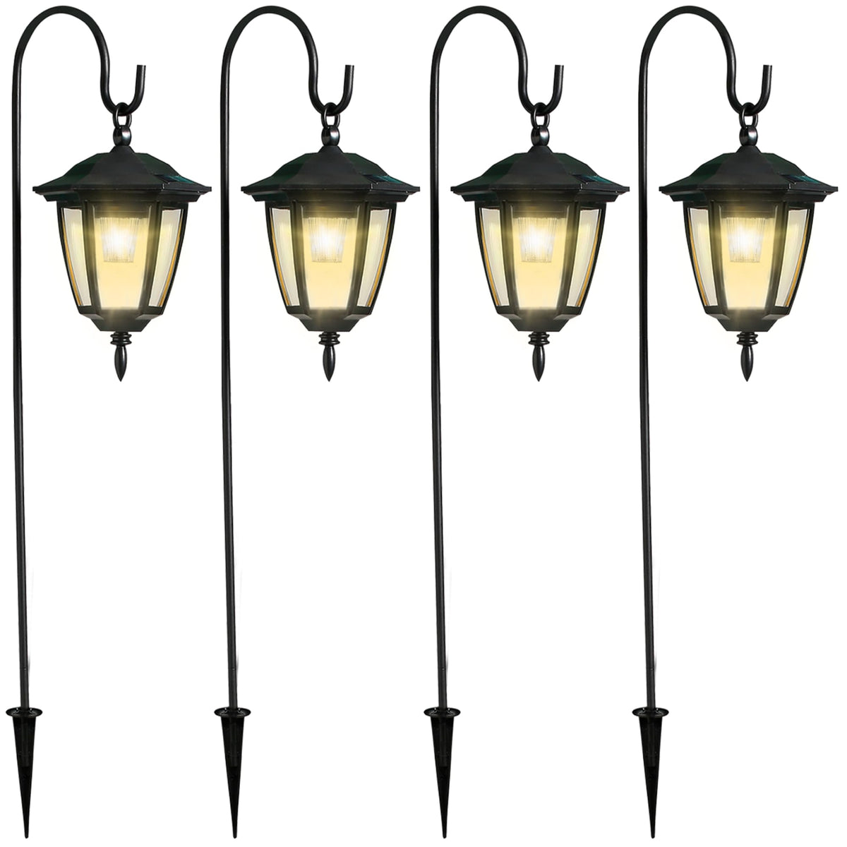 Dynaming 4 Pack Solar Hanging Lights Outdoor, Solar Powered Garden Decorative Lanterns With 4 X 38 Inch Shepherd Hooks, Waterpro