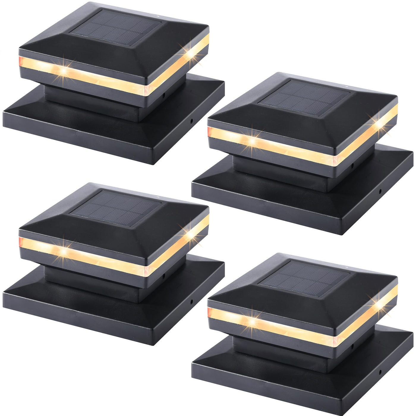 Dynaming 4 Pack Solar Post Lights, Outdoor Decorative Post Cap Light, Solar Powered Black Shell Caps, Brightness Warm White Led