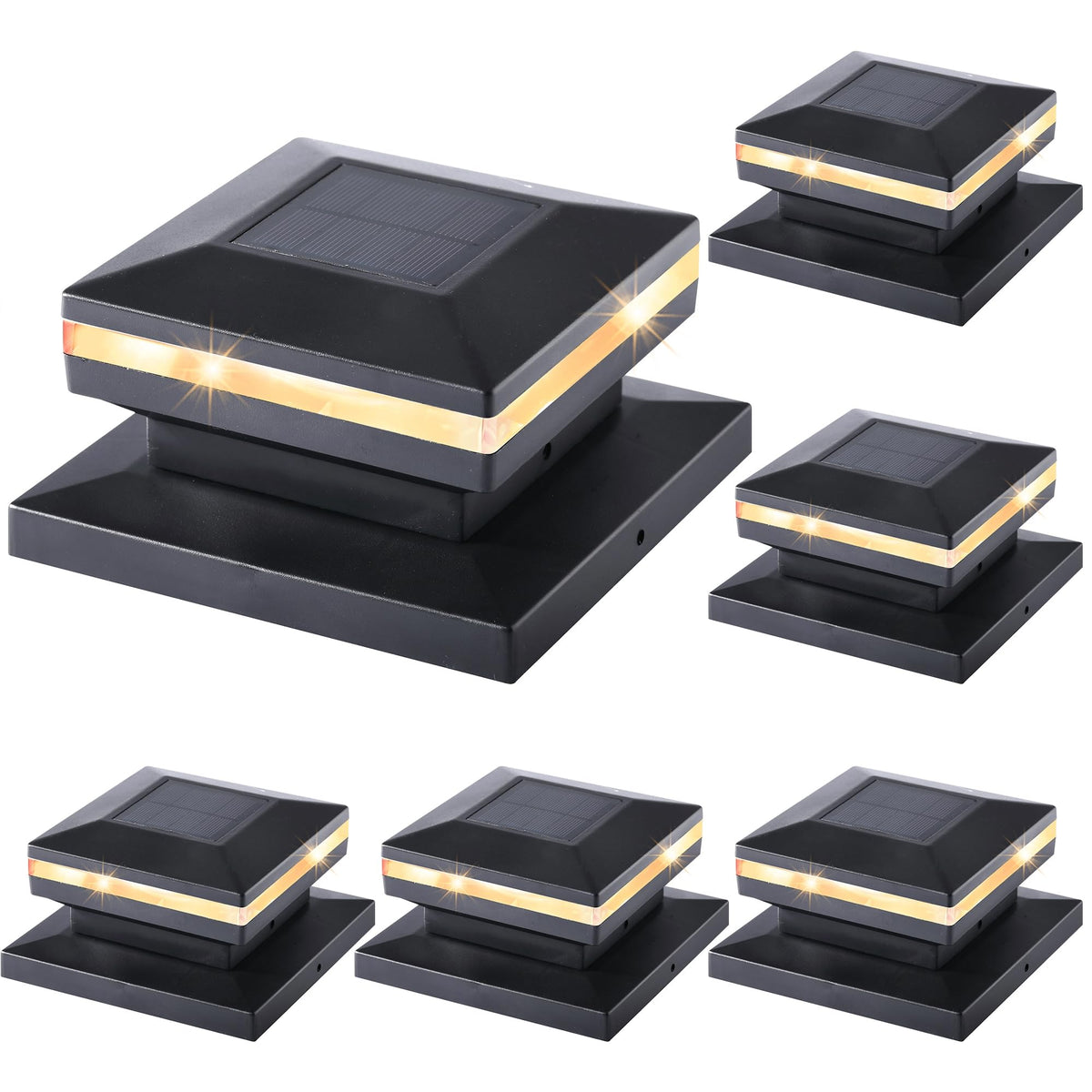 Dynaming 6 Pack Solar Post Lights, Outdoor Decorative Post Cap Light, Solar Powered Black Shell Caps, Brightnepatio, Fwhite Led