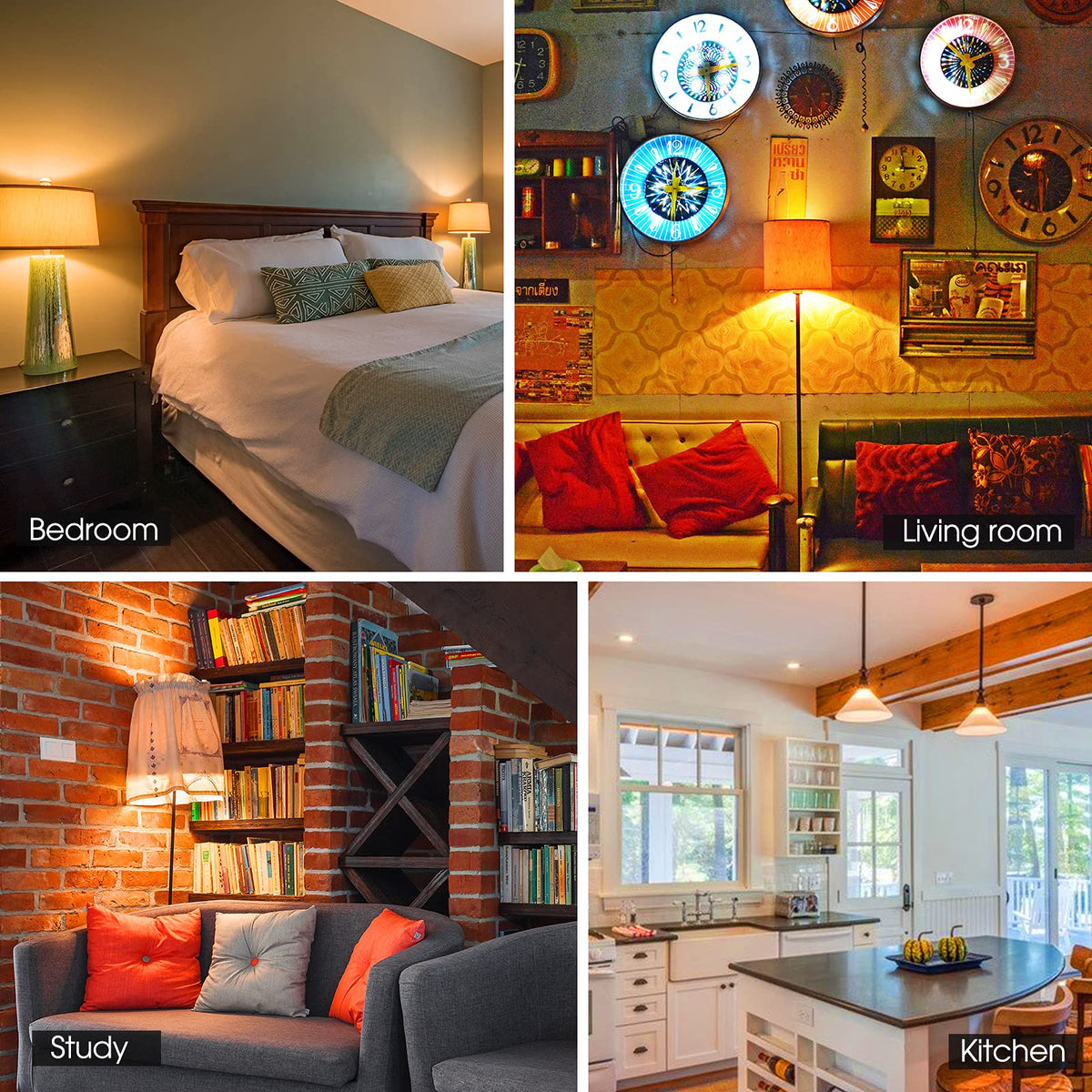 Q: Where can I use these LED light bulbs?A: These versatile A19 LED bulbs are suitable for a wide range of applications, including table lamps, floor lamps, and ceiling fixtures, making them perfect for living rooms, bedrooms, kitchens, and more.