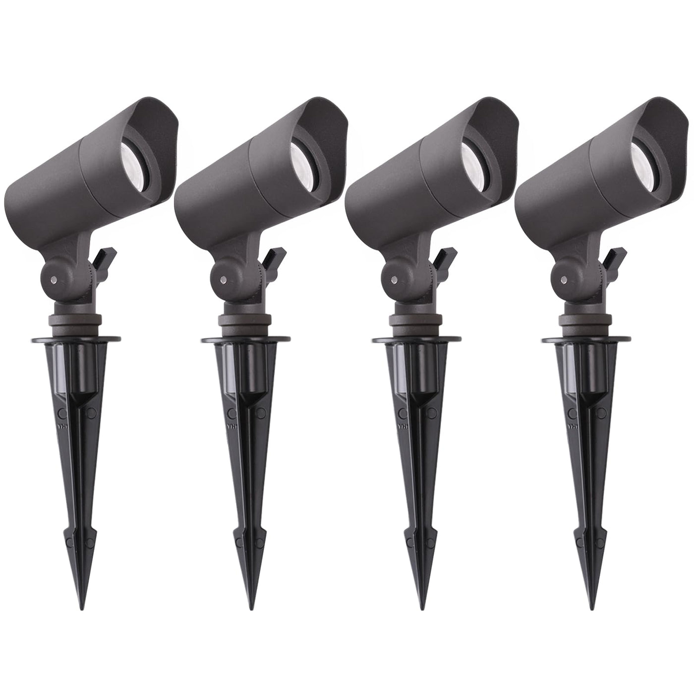 Led Landscape Lights With Connectors, 12V Low Voltage, Warm White 3000K, 4W, 175Lm, Outdoor Waterproof Garden Pathway Lights Wall Tree Flag Spotlights With Spike Stand, 4 Pack