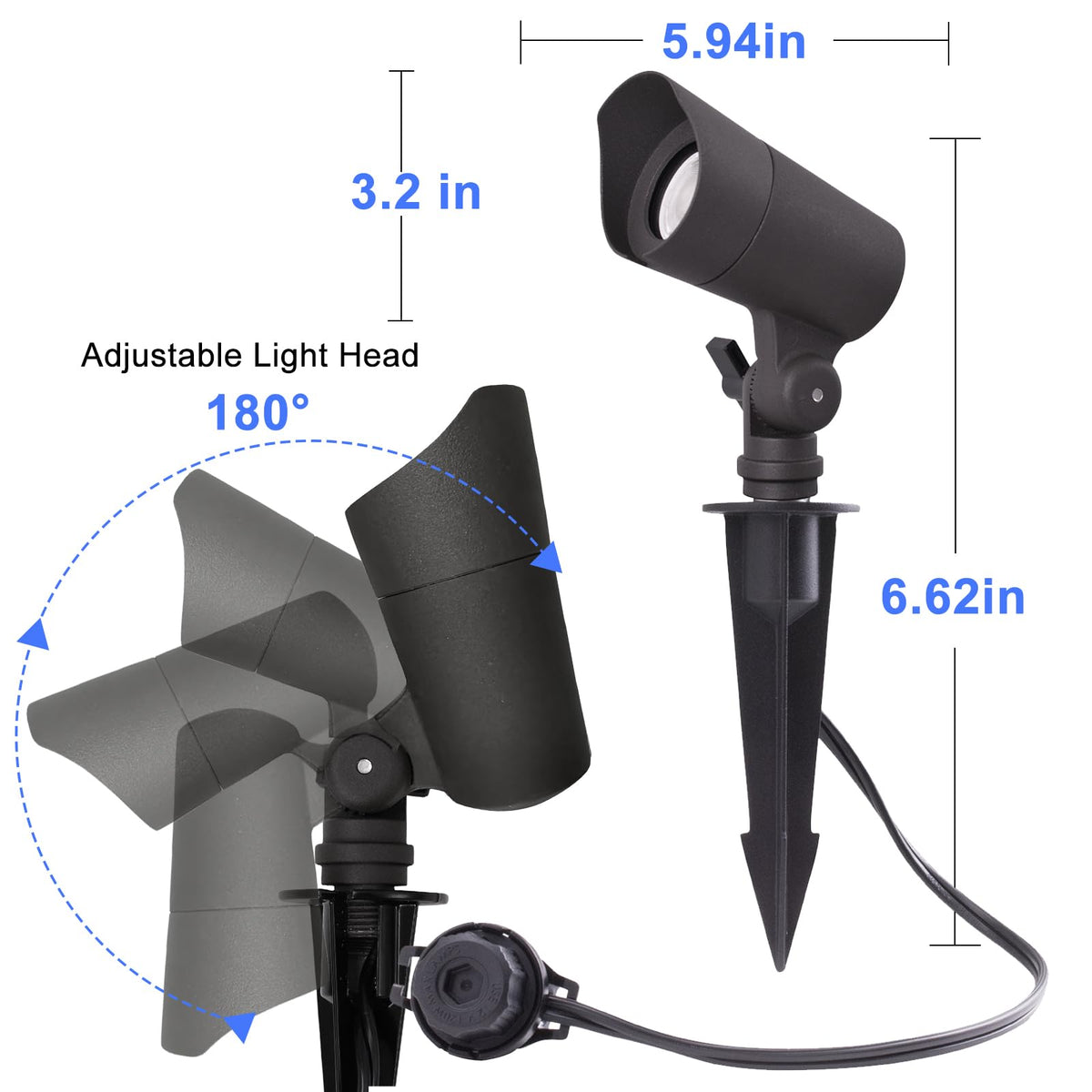 E Energetic Lighting Led Landscape Lights With Connectors, 12V Low Voltage, Warm White 3000K, 4W, 175Lm, Outdoor Waterproof Gard