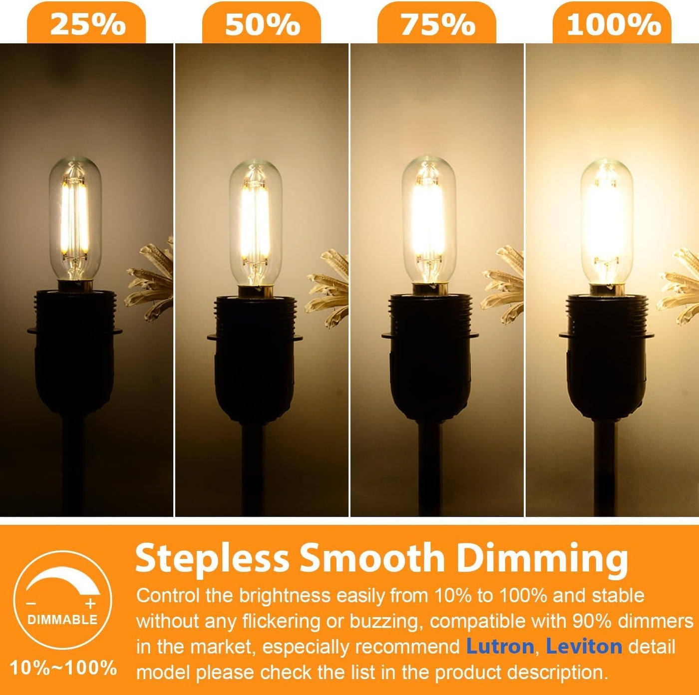 Put this brilliant warm white T6 bulbs from Brightever to light up your space now! Who we are? As a professional lighting products seller, Brightever always dedicated to providing premium & cost-effective products for our consumers to meet their needs. We have been designed and manufactured decorative&functional lighting for international market for 10+ years, and remain as close to our core values as we ever have: premium materials, updated function, unique design, quick response. We always trying every effort to bring surprise! Points you may concerned about: Are these T6 bulbs dimmable? Yes, these bulbs are dimmable designed, ideal for applying on your chandelier light fixtures, ceiling lights, pendant light with dimmable wall switch. Delicate and cute tubular looking creates elegant ambient among your area. What if I received defective bulbs? We understand that bulbs are easy fragile goods so that theyll be exposed among more unpredictable conditions during delivery process. If such issue happened on you, dont worry we definitely responsible for that and well try every effort to troubleshoot for you within 24 hours. Please note: The bulbs are in smaller size to replace candelabra bulbs please check before order! The bulbs is 2700K warm white, please check carefully before order. The bulbs adopt E12 base as candelabra bulbs. Parameters:Material: Glass&AluminiumLight Temp: 2700K Warm WhiteDimension: 0.98*3.35in mini sizeInput Voltage: 100-130V AC CRI (color rendering index): 90+Power : 6WBrightness: 600LMLifespan: 25000+Hours