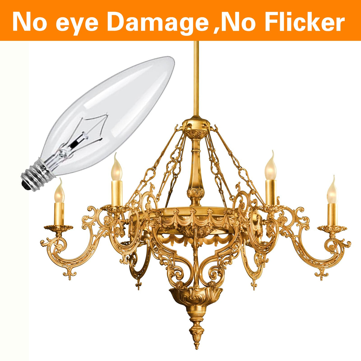 E12 Candle Light Bulbs,60W Candelabra, B10 Clearbase Bulb With Warm White 2700K, 600 Lumen Dimmable, Ca10 Clear Candelabra Base