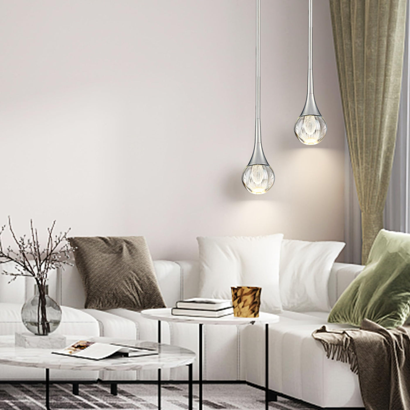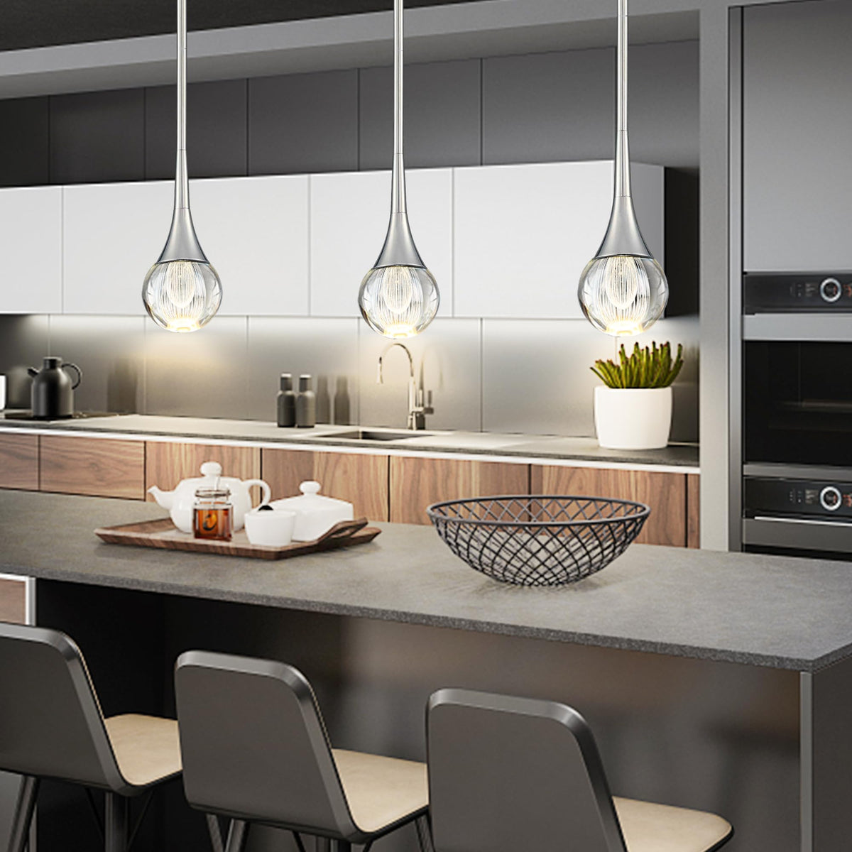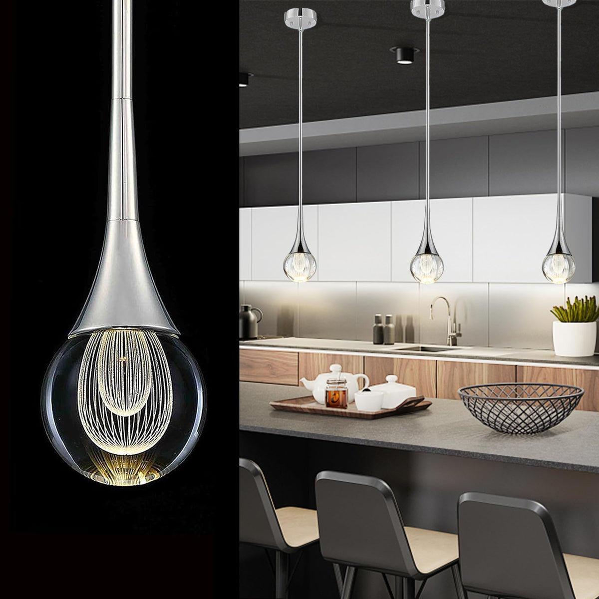 Eanloly 1-Pendant Lights Kitchen Island, Silver Globe Crystal Ceiling Hanging Light Fxitures, Led Raindrop Light Fixtures Metal