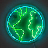 Q: What are the dimensions and weight of the Earth Neon Sign?A: The Earth Neon Sign measures approximately 13.0 inches in length and 12.2 inches in width, making it a compact yet eye-catching piece. It weighs about 1.43 pounds, making it easy to hang and move as needed.