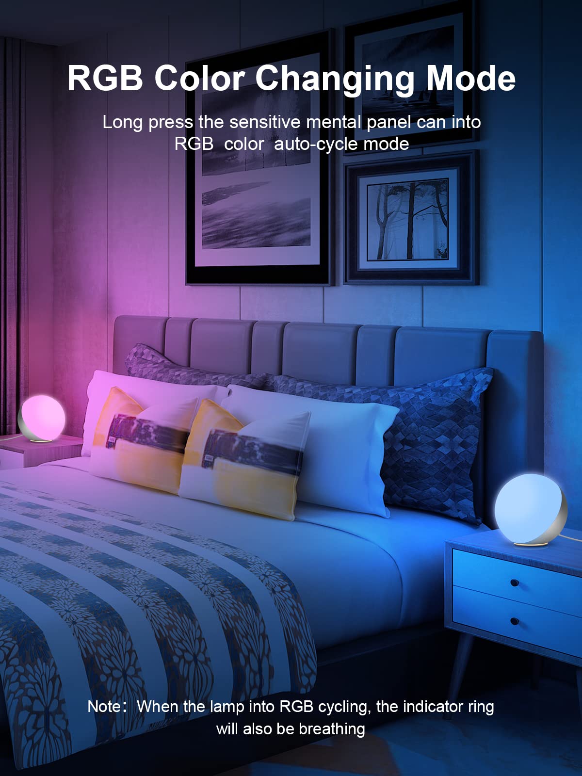 Easemo Bedside Lamp For Bedroom, Led Touch Lamp With Charger, Dimmable Bedside Lamp With Warm & White Light, Multicolor Night Li