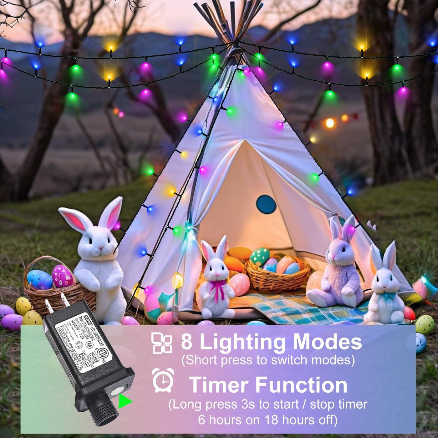 Easter Lights, 66Ft 200 Led Christmas Lights Outdoor With Waterproof 8 Modes, Plug In Connectable Twinkle String Light For House