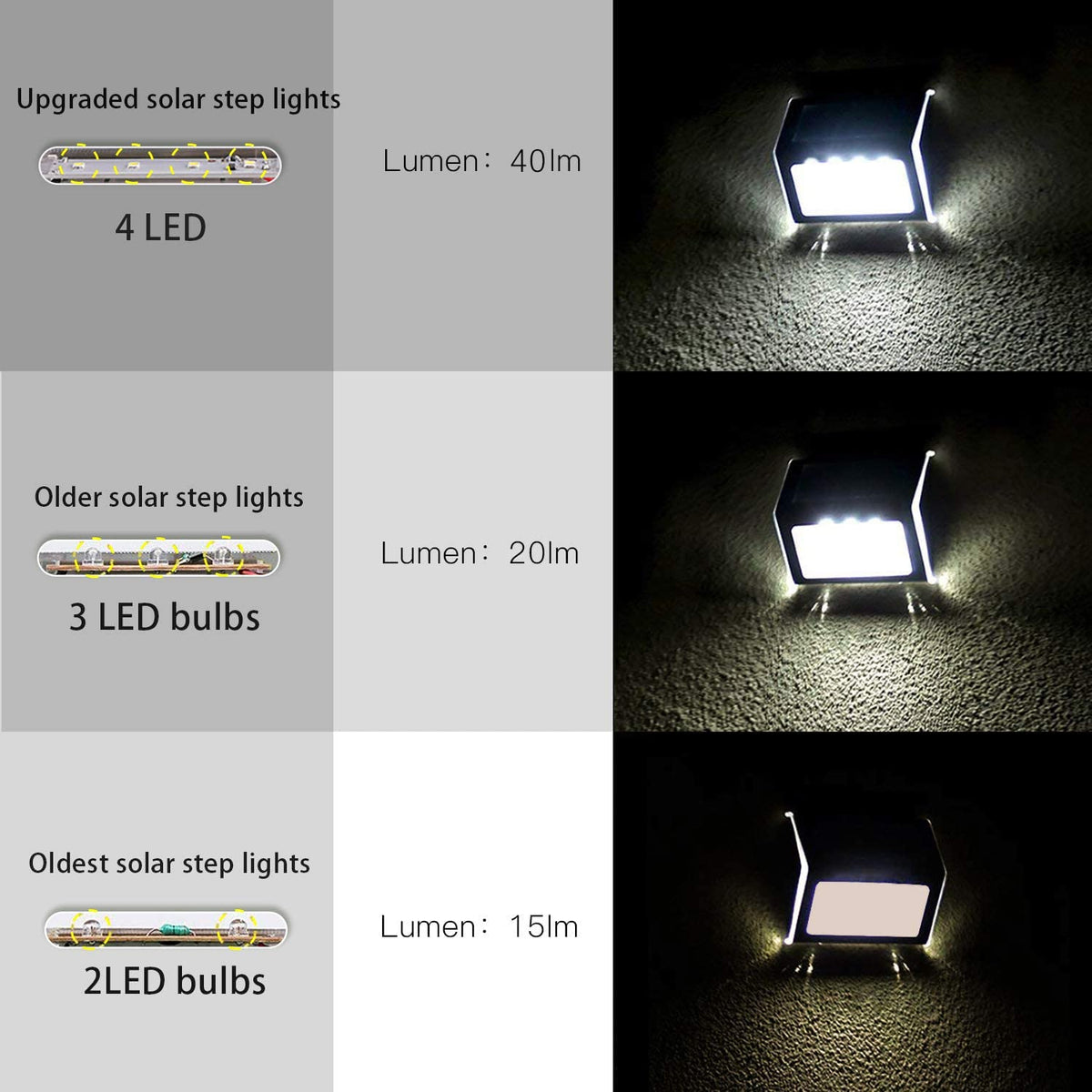 EASTERNSTAR Solar Deck Lights 12-Pack, 4 LEDs, Stainless Steel, Solar Powered, Waterproof IP44, Ideal Outdoor Lights for Step St