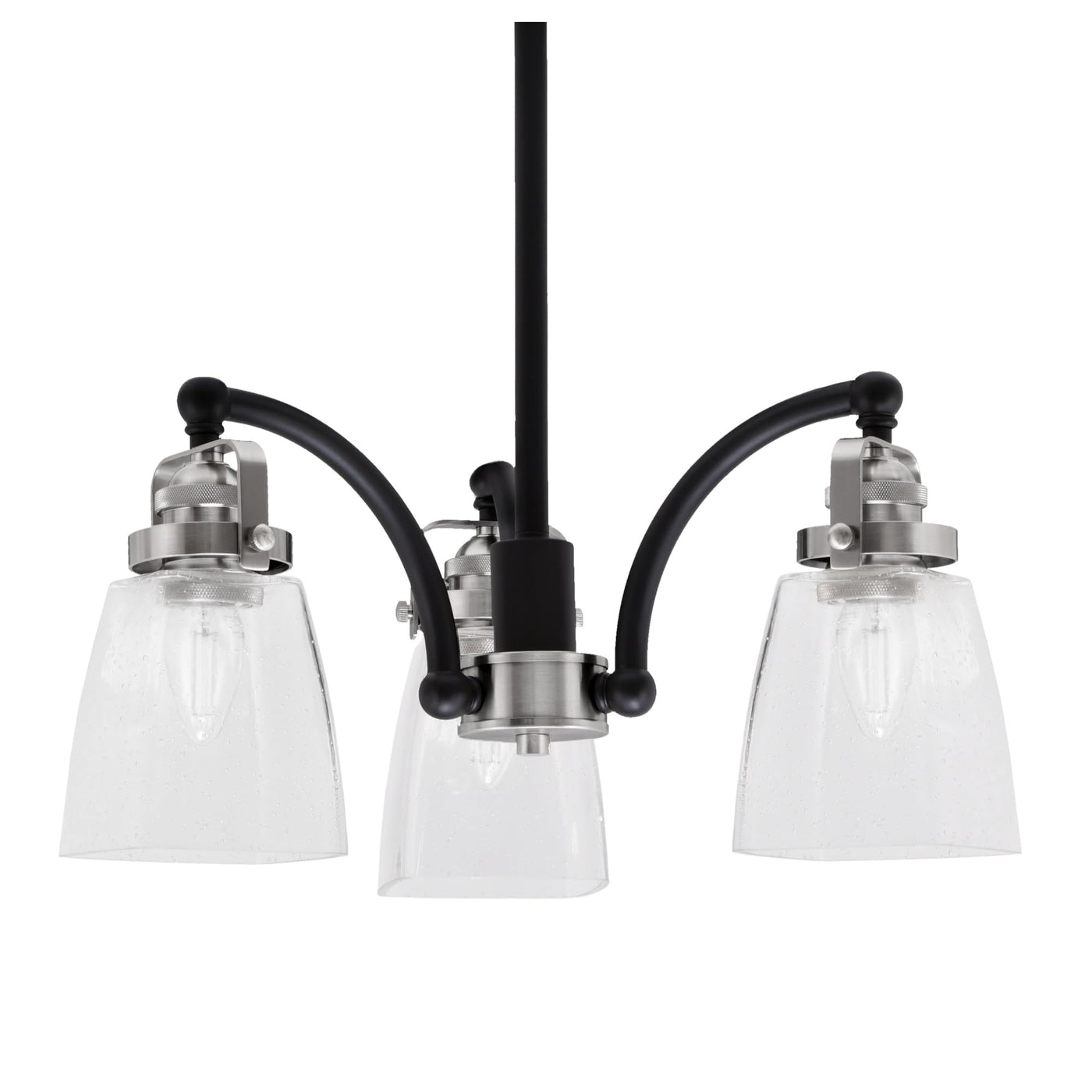 Easton Downlight, 3 Light, Chandelier Shown In Matte Black & Brushed Nickel Finish With 4.5" Square Clear Bubble Glass