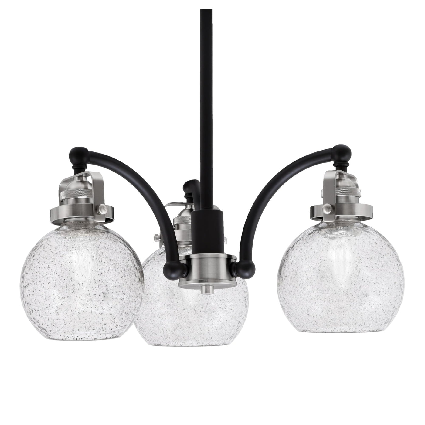 Easton Downlight, 3 Light, Chandelier Shown In Matte Black & Brushed Nickel Finish With 5.75" Smoke Bubble Glass