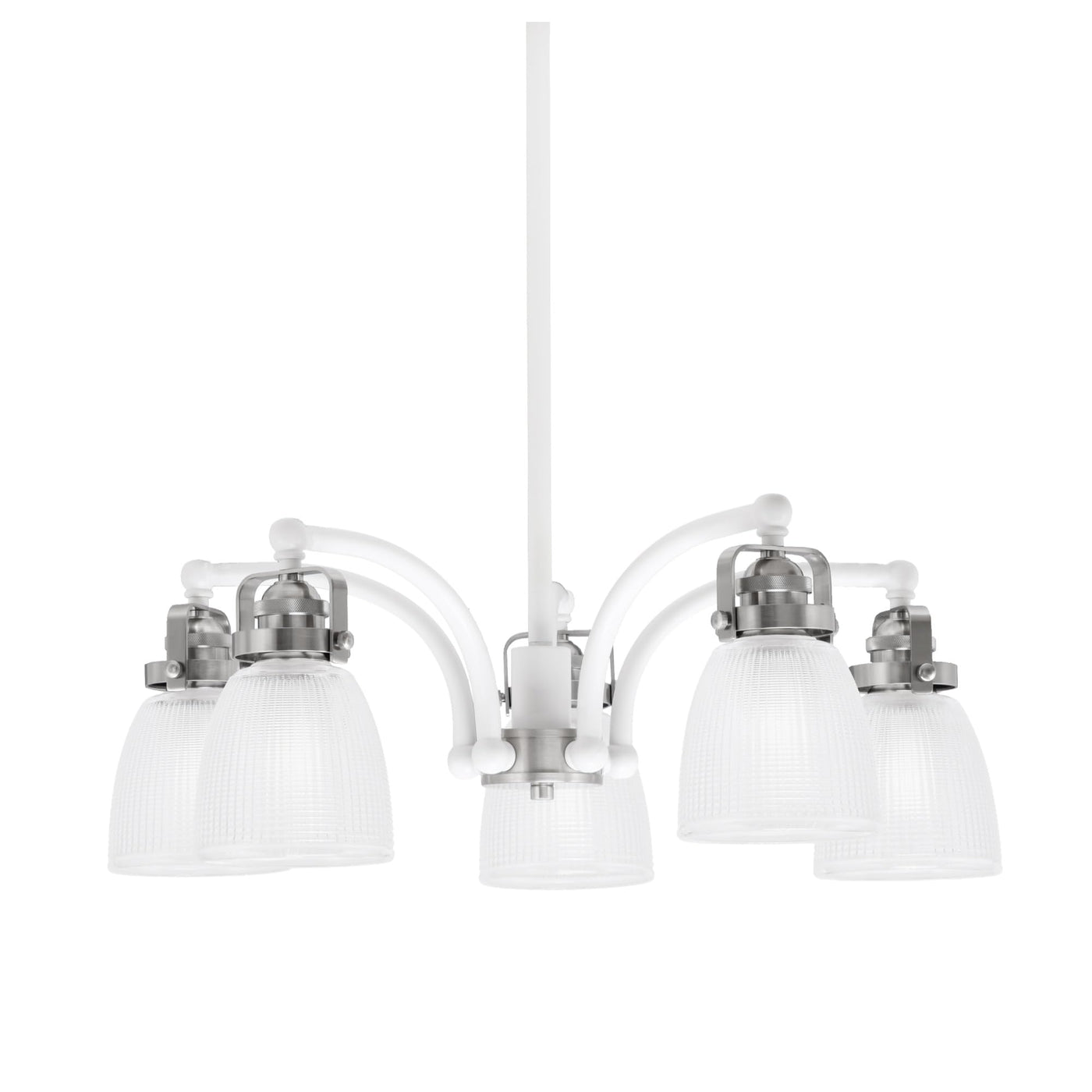 Easton Downlight, 5 Light, Chandelier Shown In White & Brushed Nickel Finish With 5" Clear Ribbed Glass