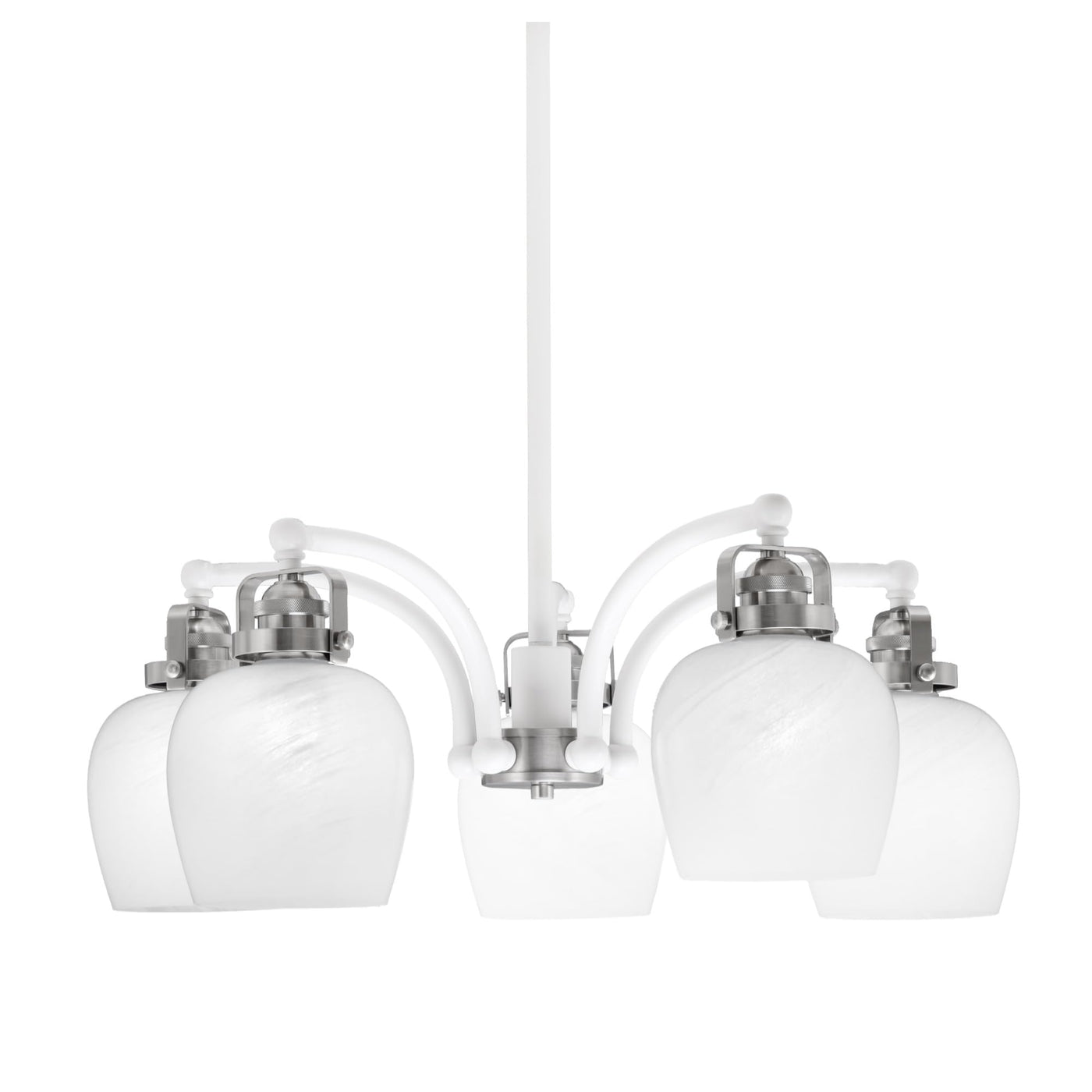 Easton Downlight, 5 Light, Chandelier Shown In White & Brushed Nickel Finish With 6" White Marble Glass