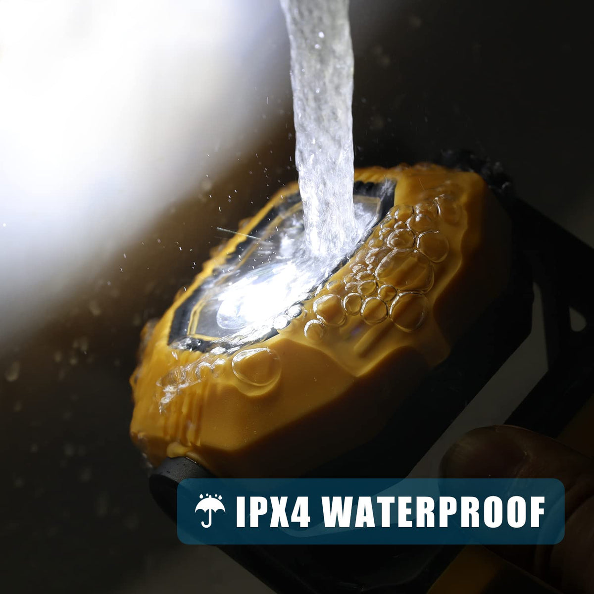 Q: Is the EASYmaxx work light waterproof, and what does IPX4 rating mean?A: Yes, the EASYmaxx work light is rated IPX4 waterproof, meaning it is protected against splashes of water from any direction, making it suitable for outdoor use in various weather conditions.