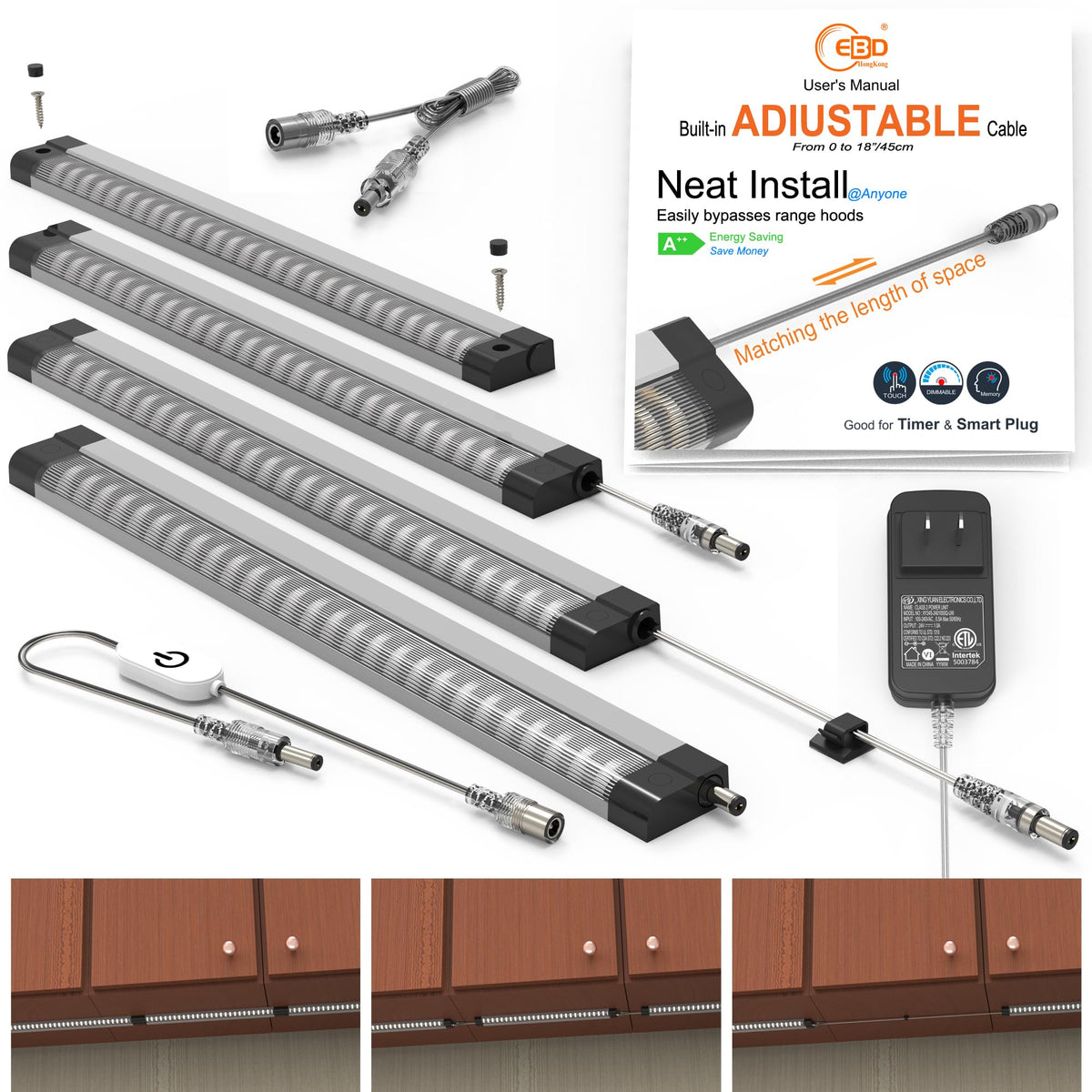 Ebd Led Under Cabinet Lighting Bar Built-In Adjustable Cable Neat Install Under Counter Lights For Kitchen Closet Shelf Workbenc