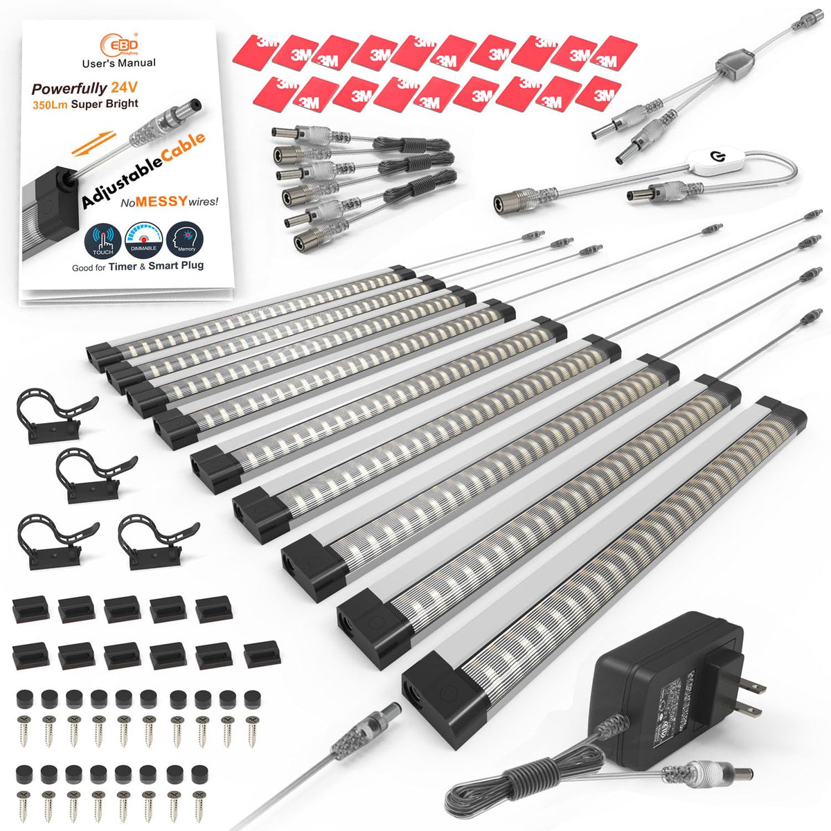 This Powerful Under Cabinet Lights Series Leds Lighting What Makes Us Special, Practical, Ultra-Bright &Amp; Energy Efficient All In One, If You Are Looking For New Ideas In Your Interior Lighting, This Led Lights Will Be A Perfect Choice For You! Make Them Your Closet Lights, Kitchen Lighting, Workshop Light, Garage Lights, Liquor, Cupboard Light, Book Shelf Lights, Wardrobe Light, Bookcase / Showcase Lights... You Name It! Also Suitable For Daily And Workplace Use Such As Office, Home, Hallway, Corridor &Amp; Stairs Etc.! This Pack Features: ? Built-In 45Cm Adjustable Transparent Cable, Can Adjust Cable Length At Will, No Redundant Wires, No Messy! Neat &Amp; Beautiful!&Nbsp;Very Practical! ? Safe 24V Power Supply Without Voltage Drop, Maximum Connection To 10M /&Nbsp;30Ft, More Uniform Brightness; ? 3 Pcs 120Cm / 48'' Extra Long External Transparent Cable; ? Super Dimmer Will Remember Your Settings Even When The Power Is Off, Perfect For Timers And Smart Plugs! ? Energy Saving &Amp; Super Bright Included : 5 X 1230Cm Led Light Bars With 18 Inch / 45Cm Built-In Adjustable Transparent Cable 1 X 1230Cm Led Light Bar Without Built-In Adjustable Cable 1 X 24W Etl Listed Power Supply With 48 Inch / 120Cm Transparent Wires 1 X Touch Dimmer With 24 Inch / 60Cm Transparent Wires 1 X Wire Splitter 3 X 48 Inch / 120Cm Transparent Extension Cable 19 X 3M Waterproof Stickers 18 X Screws 11 X Cable Clip 4 X Wire Tie Full Set Caps Ebd, Best Choice!