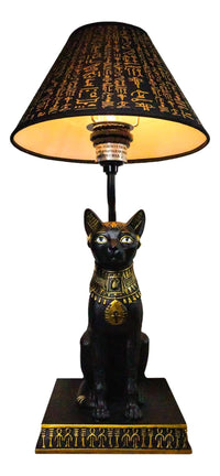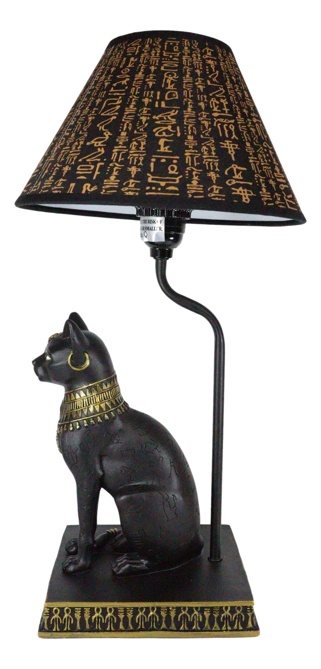 Ebros Ancient Illumination Classical Egyptian Goddess Ubasti Bastet Cat Side Table Lamp Sculpture With Hieroglyphic Shade Deity Of Protection Fertility And The Home Lighting Accent (Black And Gold)