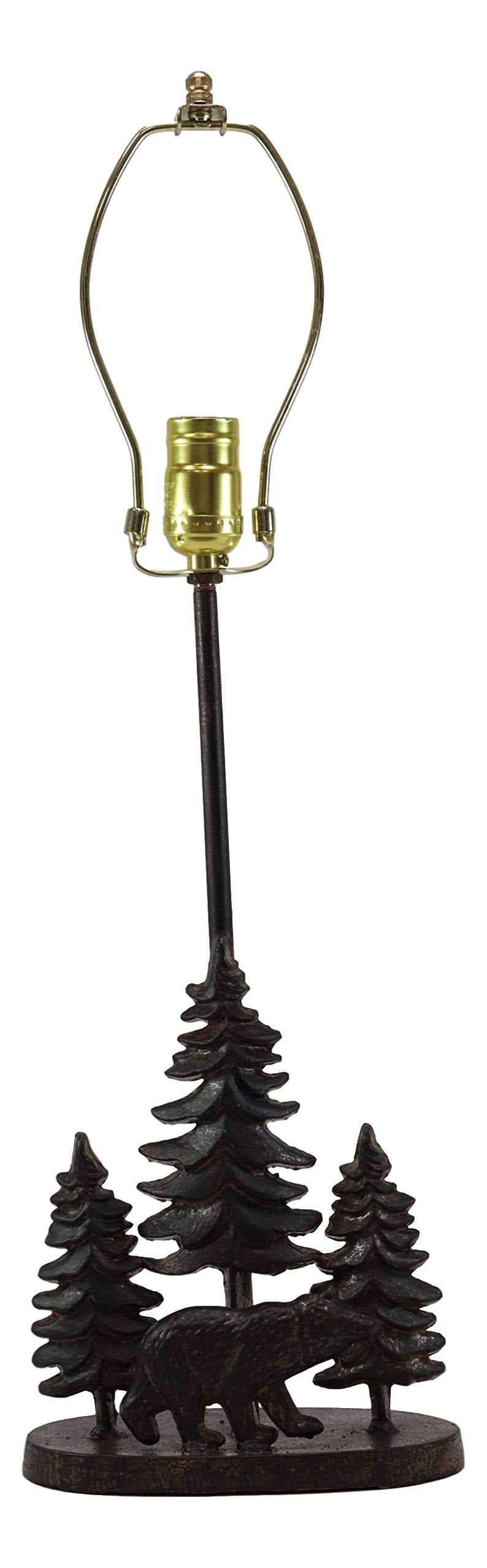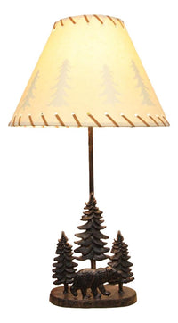 Bears have long been a symbol of nature's nurture, close to our hearts. In this whimsical home decor, we feature a black bear roaming in the forest full of pine trees. Painted and polished in dark bronze, the lamp will elevate your room's atmosphere with rustic ambiance and an inviting warmth.