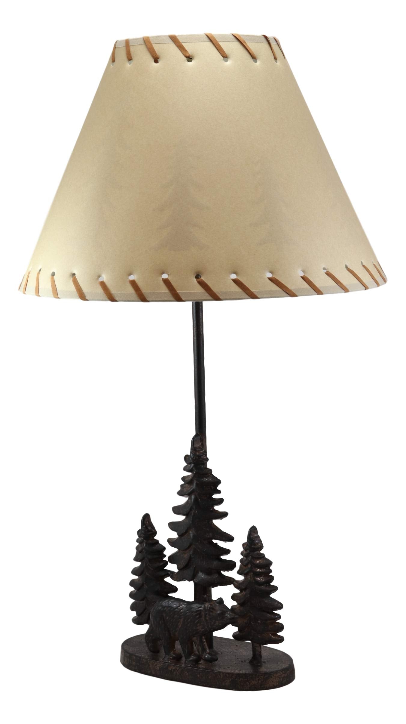 Ebros Rustic Midnight Black Bear Roaming In Pine Trees Forest Metal Table Lamp Statue With Pine Tree Shadows Printed Shade 24.5" High Mountain Woodland Cabin Lodge Western Decor Bears Desktop Lamps