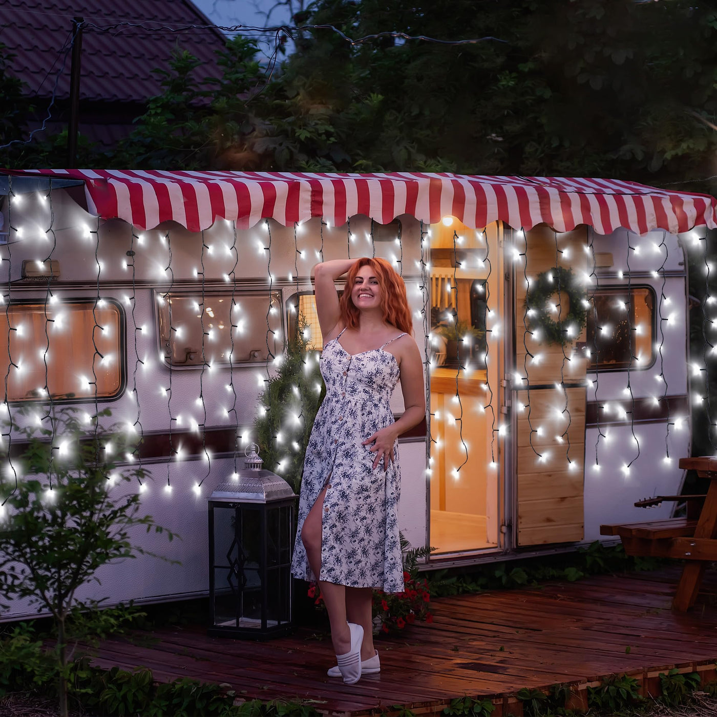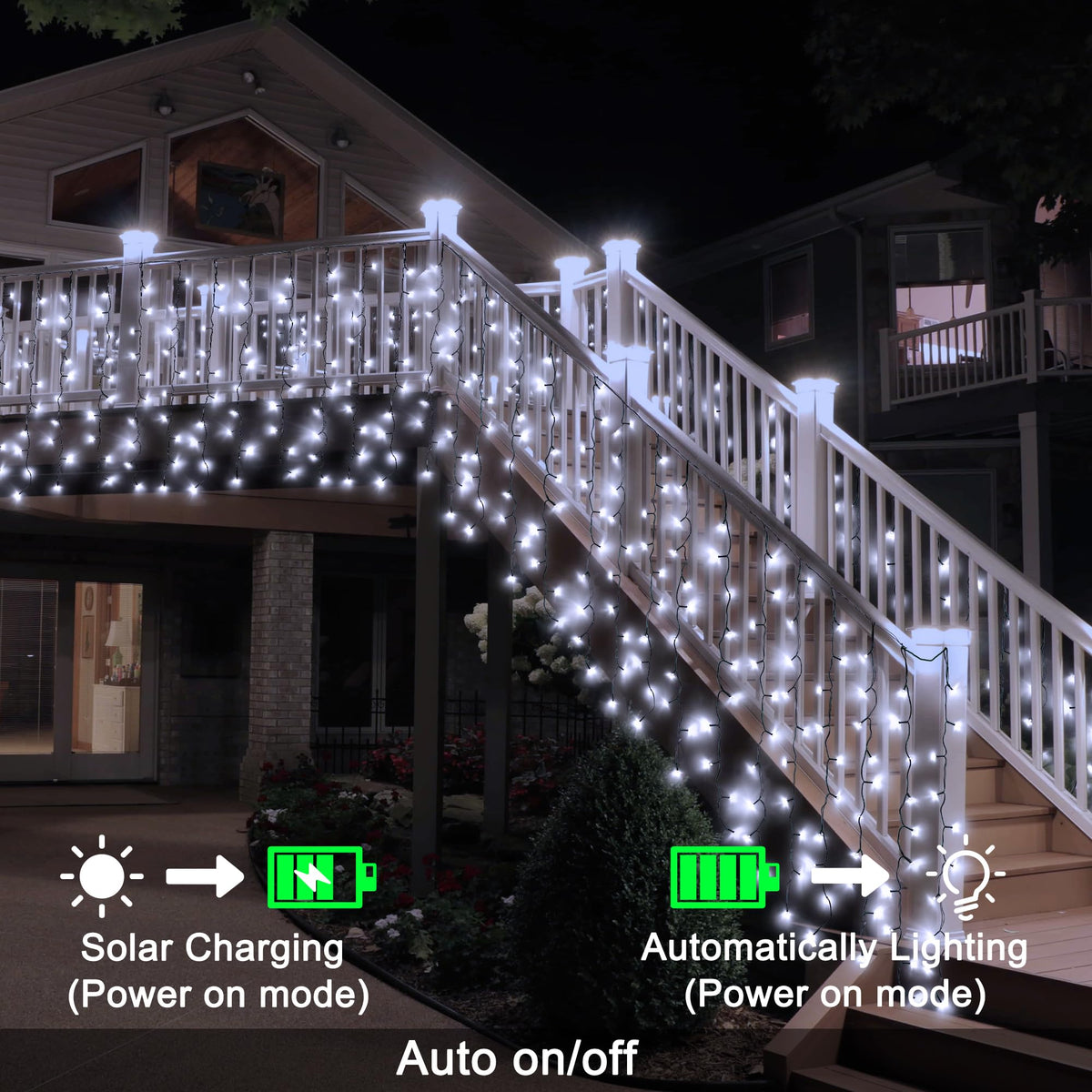 Q: Are the echosari solar curtain lights waterproof?A: Yes, these LED curtain lights are designed to be waterproof, making them suitable for outdoor use in various weather conditions, perfect for decorating patios, gardens, and weddings.