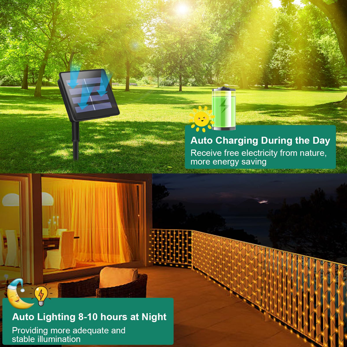 - **Solar Powered & Energy Efficient**: Enjoy the benefits of solar energy with our 200 LED Solar Net Lights, providing up to 8 hours of illumination after just 6 hours of charging. Perfect for outdoor decorations without the hassle of wires.