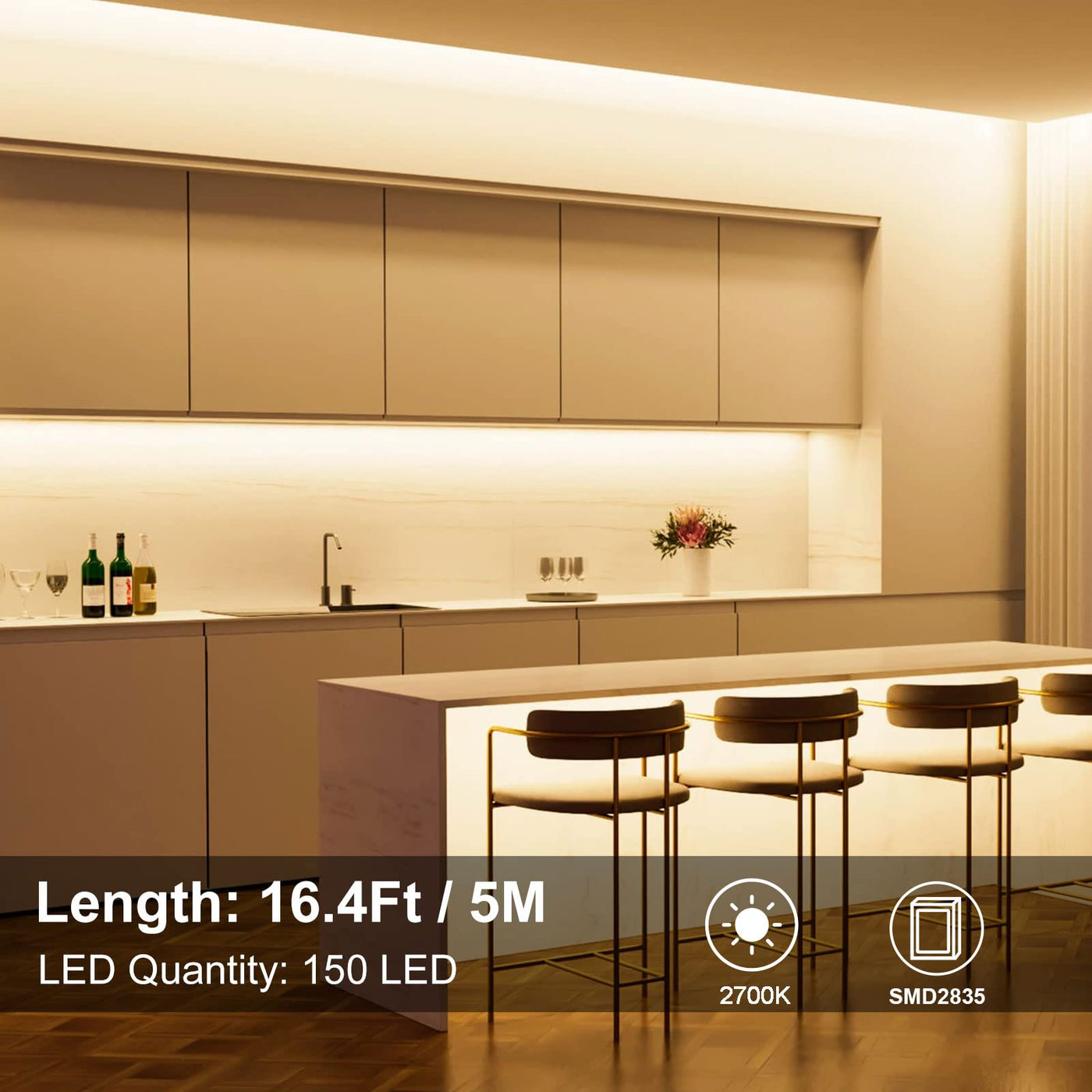 Echosari Strip Lights Battery Operated, 16.5Ft 150 Led 2835 Smd Closet Strip Lights With Remote For Bedroom, Kitchen, Cabinet Décor (Warm White)