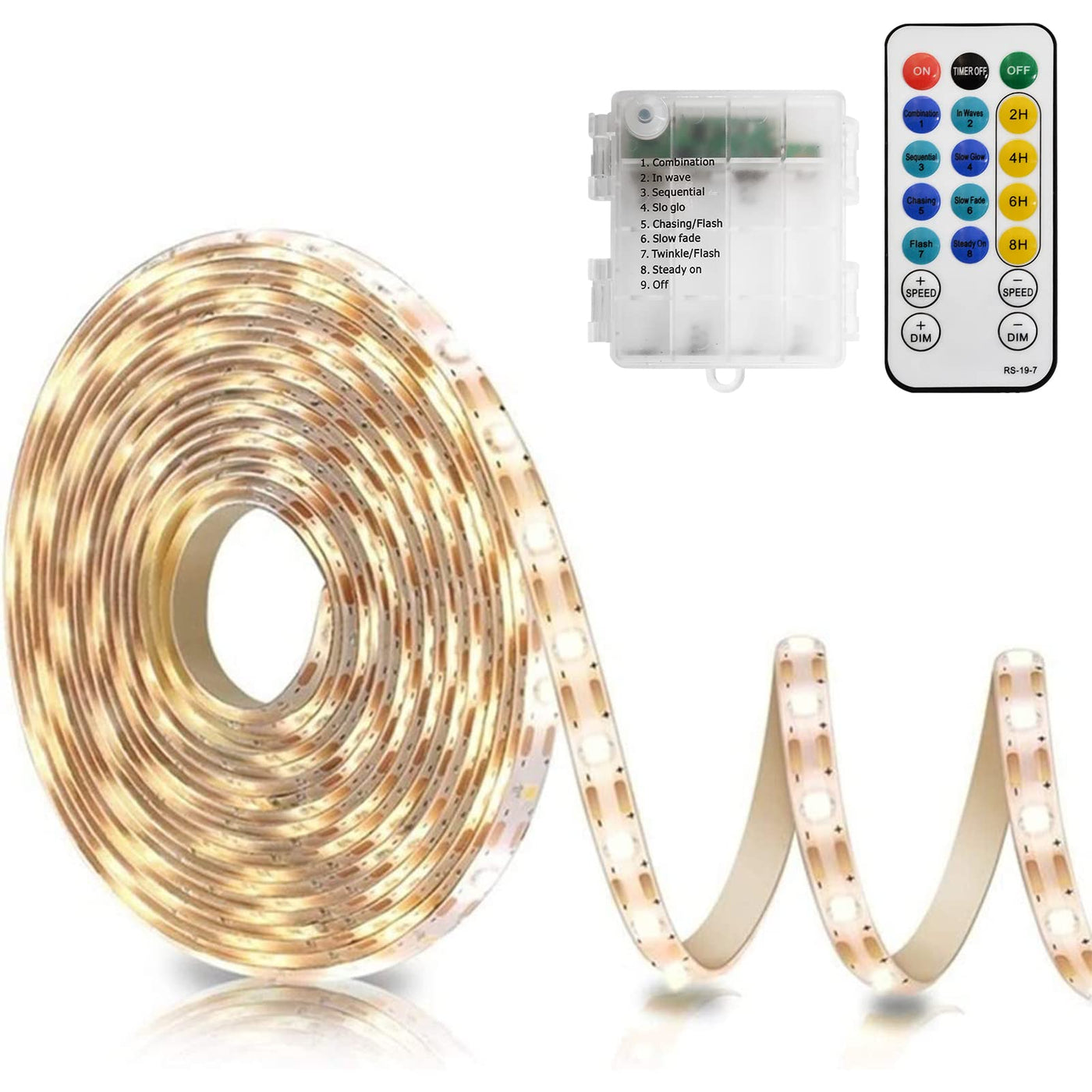 LED Strip Lights Battery Operated, 16.5Ft 150 LED 2835 Closet Strip Lights Strong Self-adhesive, Cuttable, Timer, Waterproof Outdoor Indoor Strip Light for Bedroom, Kitchen, Cabinet Décor (Warm White)Specifications :