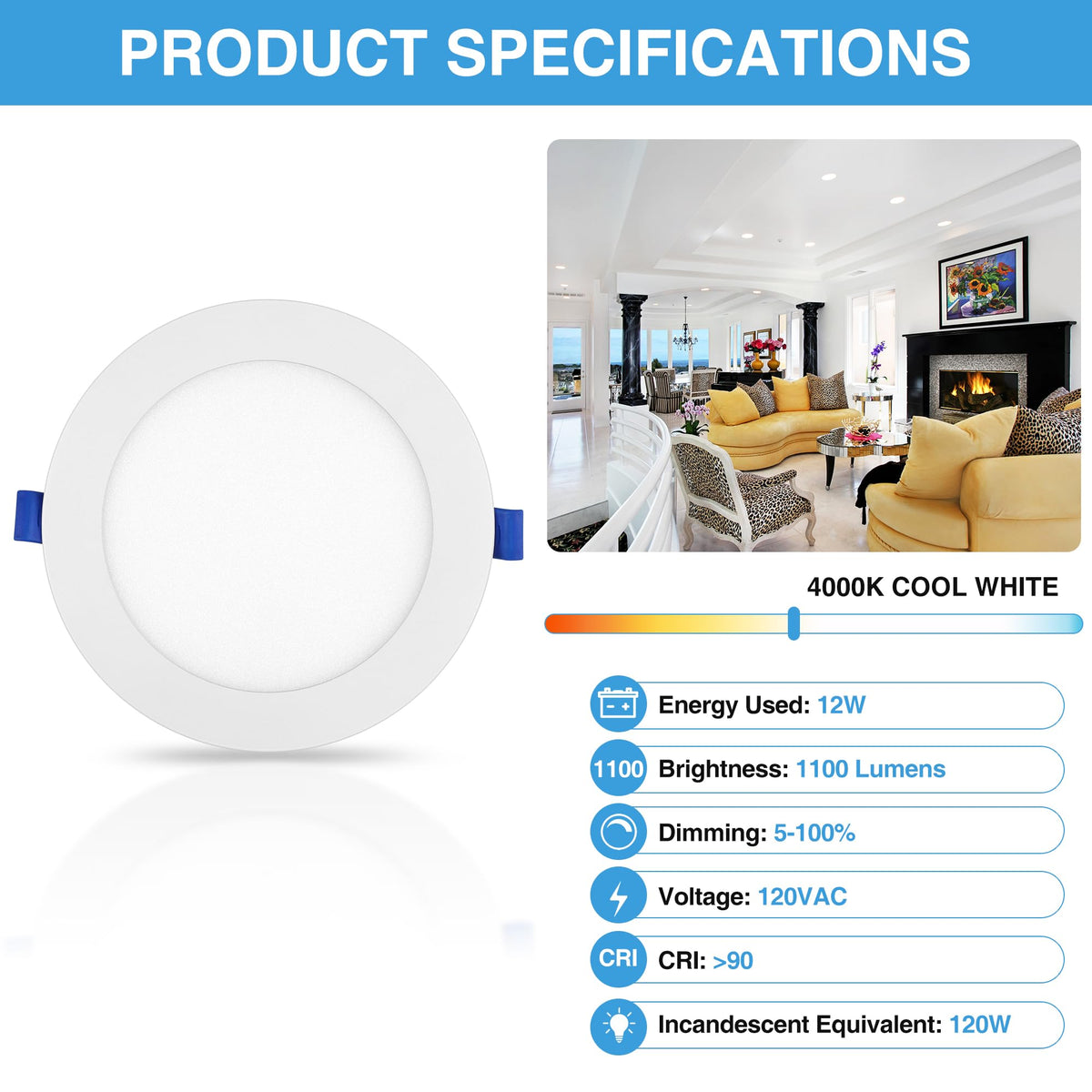Enhance Your Space With The Ecoeler 6 Inch Ultra-Thin Led Recessed Lighting, A Cutting-Edge Lighting Solution Designed To Elevate Any Indoor Environment. Crafted With Precision And Innovation, This Dimmable Led Downlight Combines Sleek Design With Powerful Performance, Delivering Exceptional Brightness And Versatility For Homes, Offices, And Commercial Spaces. Featuring A Slim Profile And Integrated Junction Box, This Ultra-Thin Recessed Light Is Easy To Install And Provides A Seamless, Flush Mount Appearance. The 6-Inch Size Fits Effortlessly Into Standard Ceiling Openings, Making It Ideal For New Construction Or Retrofit Projects. With A 12W Led Light Source, This Downlight Emits A Crisp, Cool White Light At A Color Temperature Of 4000K, Creating A Bright And Invigorating Atmosphere. Whether You'Re Illuminating A Kitchen, Bathroom, Or Workspace, The Ecoeler Led Recessed Lighting Offers Optimal Clarity And Visibility. Experience Customizable Lighting With The Dimmable Feature, Allowing You To Adjust The Brightness To Your Desired Level. From Task Lighting To Ambient Illumination, This Versatile Fixture Adapts To Suit Your Needs, Enhancing Comfort And Productivity. Upgrade Your Lighting Experience With The Ecoeler 6 Inch Ultra-Thin Led Recessed Lighting. Elevate Your Space With Its Sleek Design, High Brightness, And Dimmable Functionality. Add This Innovative Fixture To Your Cart Today And Transform Your Environment With Brilliance And Style.