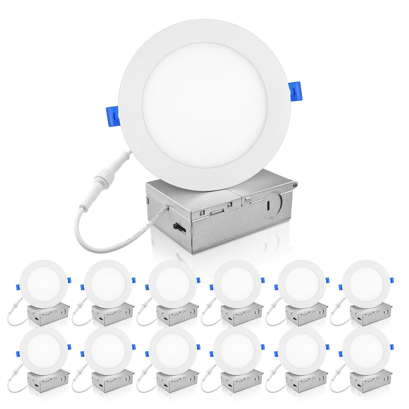 Ecoeler 12 Pack 6 Inch Slim Led Recessed Lighting With Junction Box, 5000K Daylight, Dimmable Dimmable Can-Killer Downlight, 12W