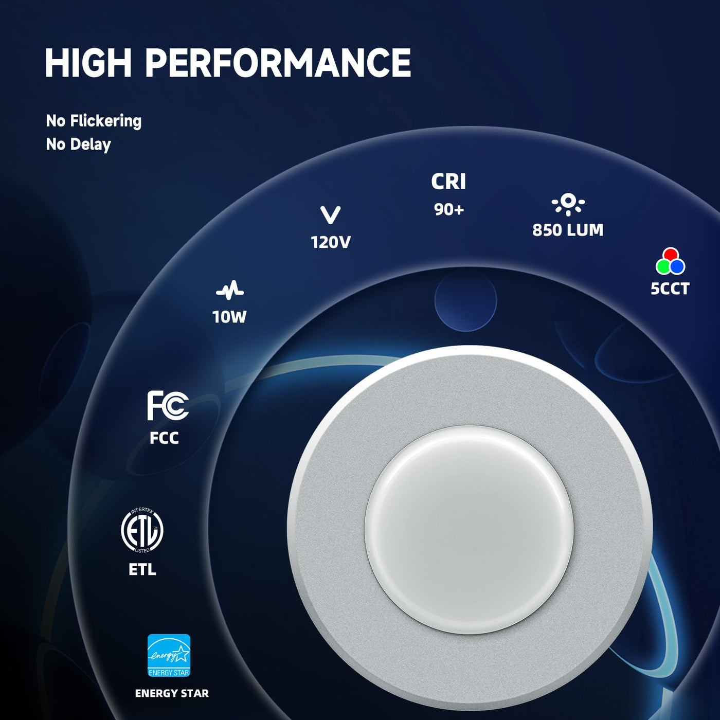 Ecoeler 5 Inch Led Surface Mount Downlights, 5Cct Dimmable Flush Mount Ceiling Light, 10.5 W 850 Lumens Cri 90, Low Profile Surf