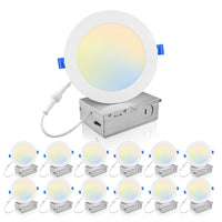 Ecoeler 6 Inch 5Cct Led Recessed Ceiling Light With Junction Box, 2700K/3000K/4000K/5000K/6000K Selectable, 12W 1100Lm, Dimmable